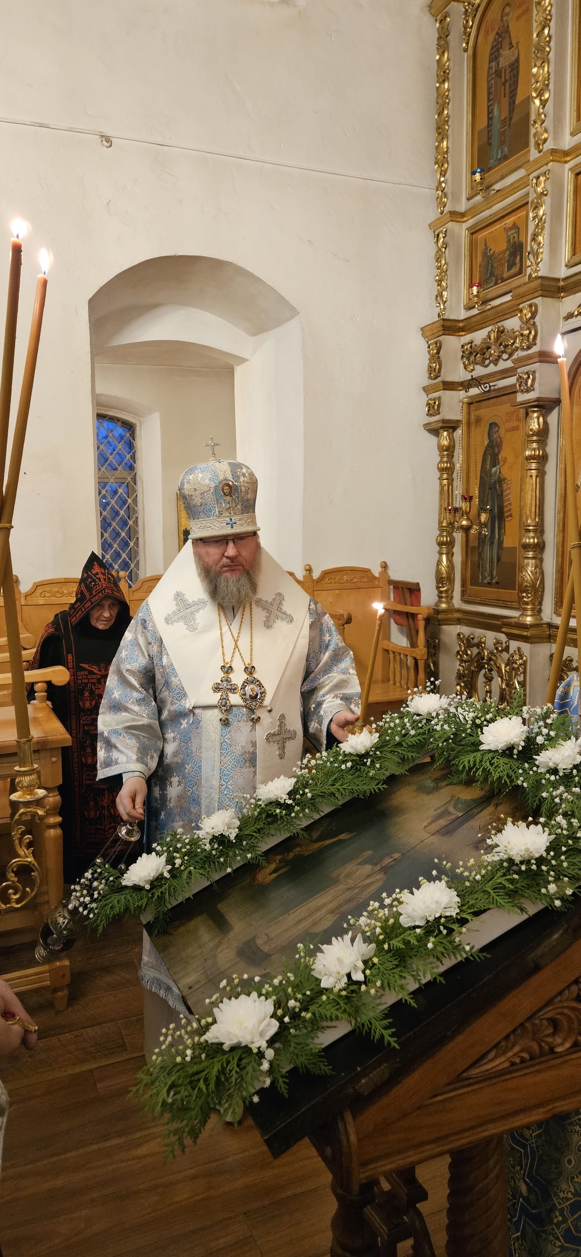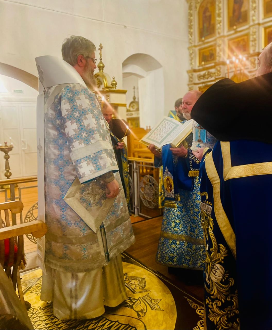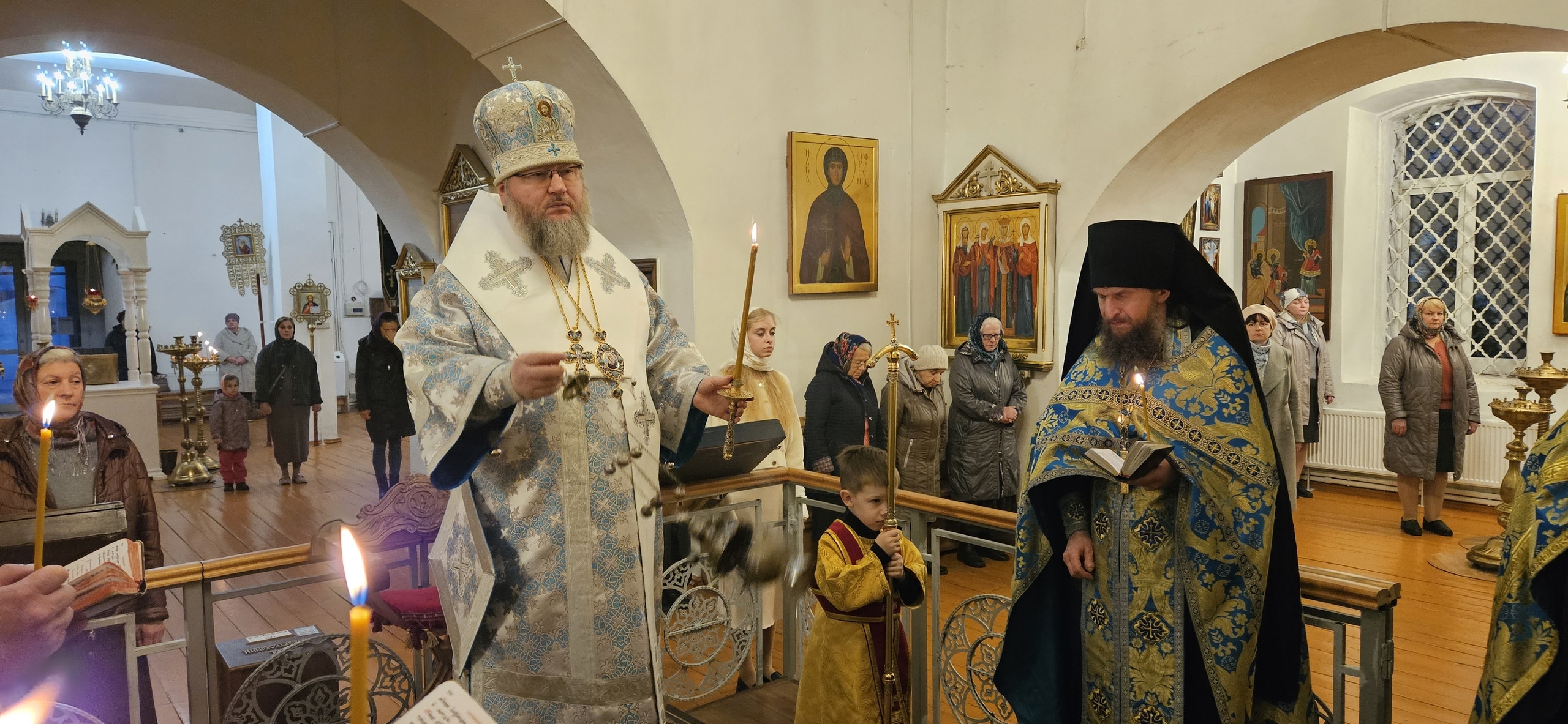 13 октября 2025 г., в канун праздника Покрова Божией Матери, Преосвященный Мелетий совершил Всенощное Бдение в Спасо-Преображенском соборе г.Рославля.