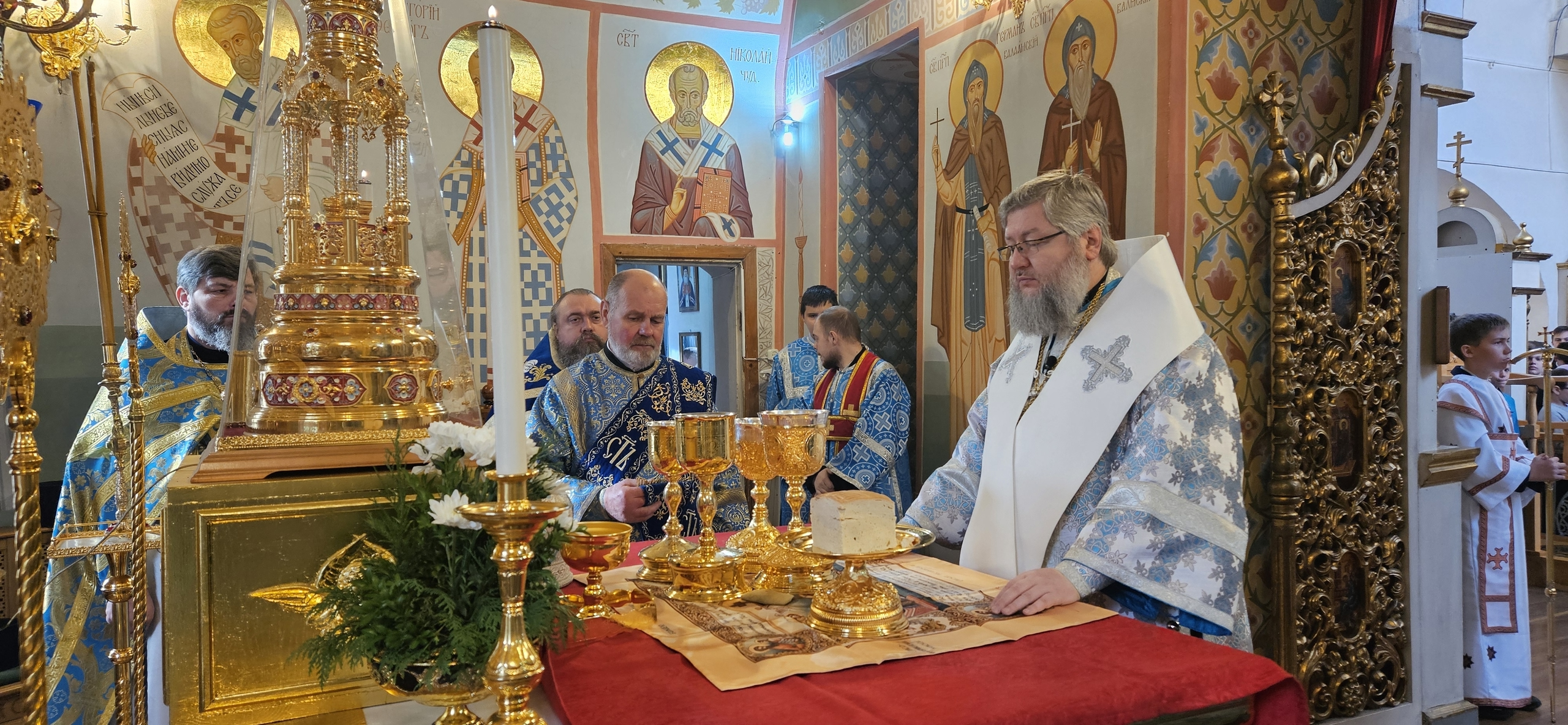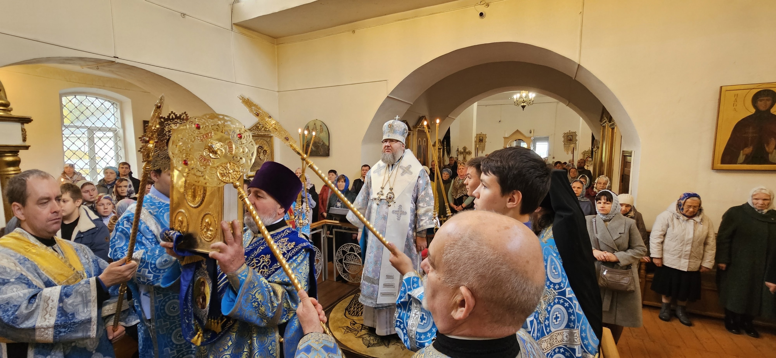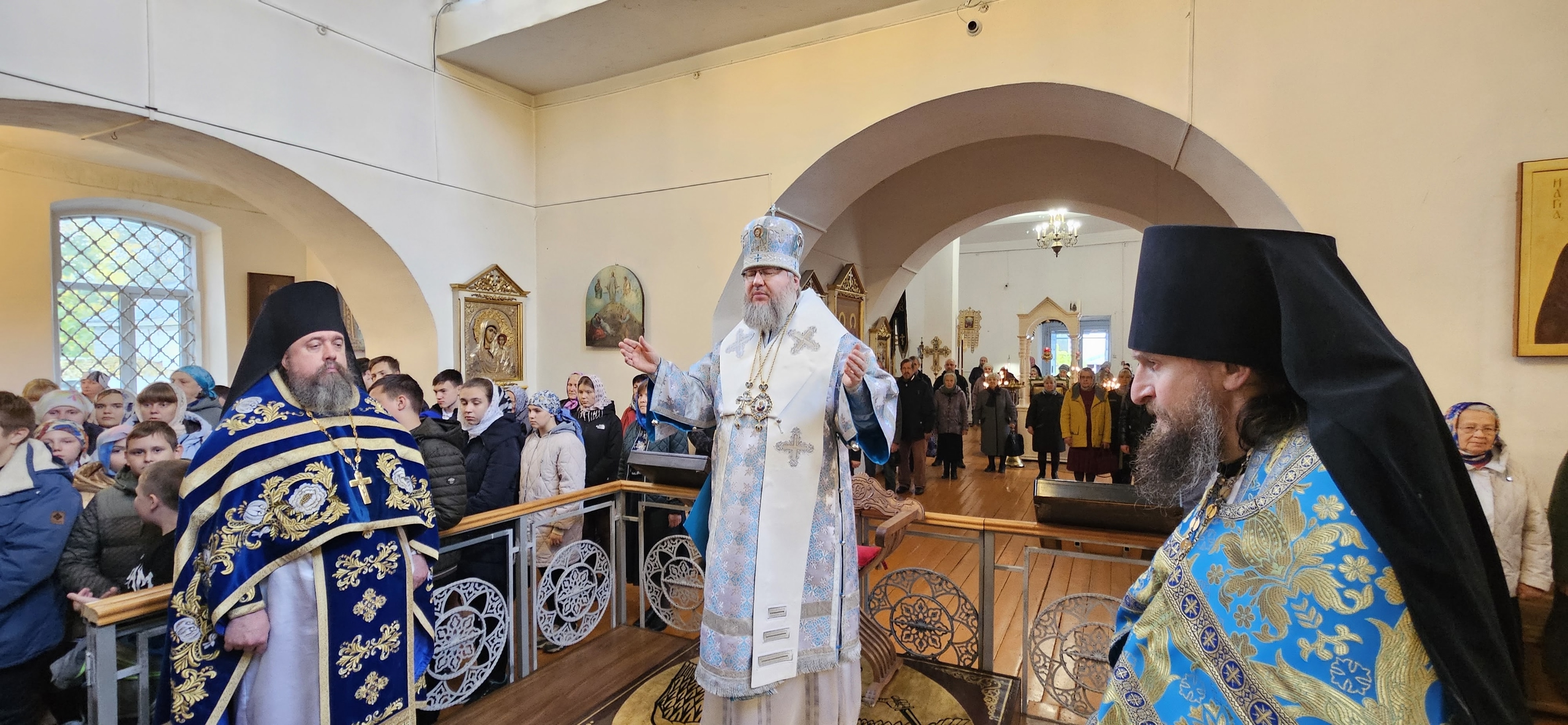 14 октября 2025 г., в праздник Покрова Пресвятой Богородицы, Преосвященный Мелетий совершил Божественную Литургию в Спасо-Преображенском соборе г.Рославля.