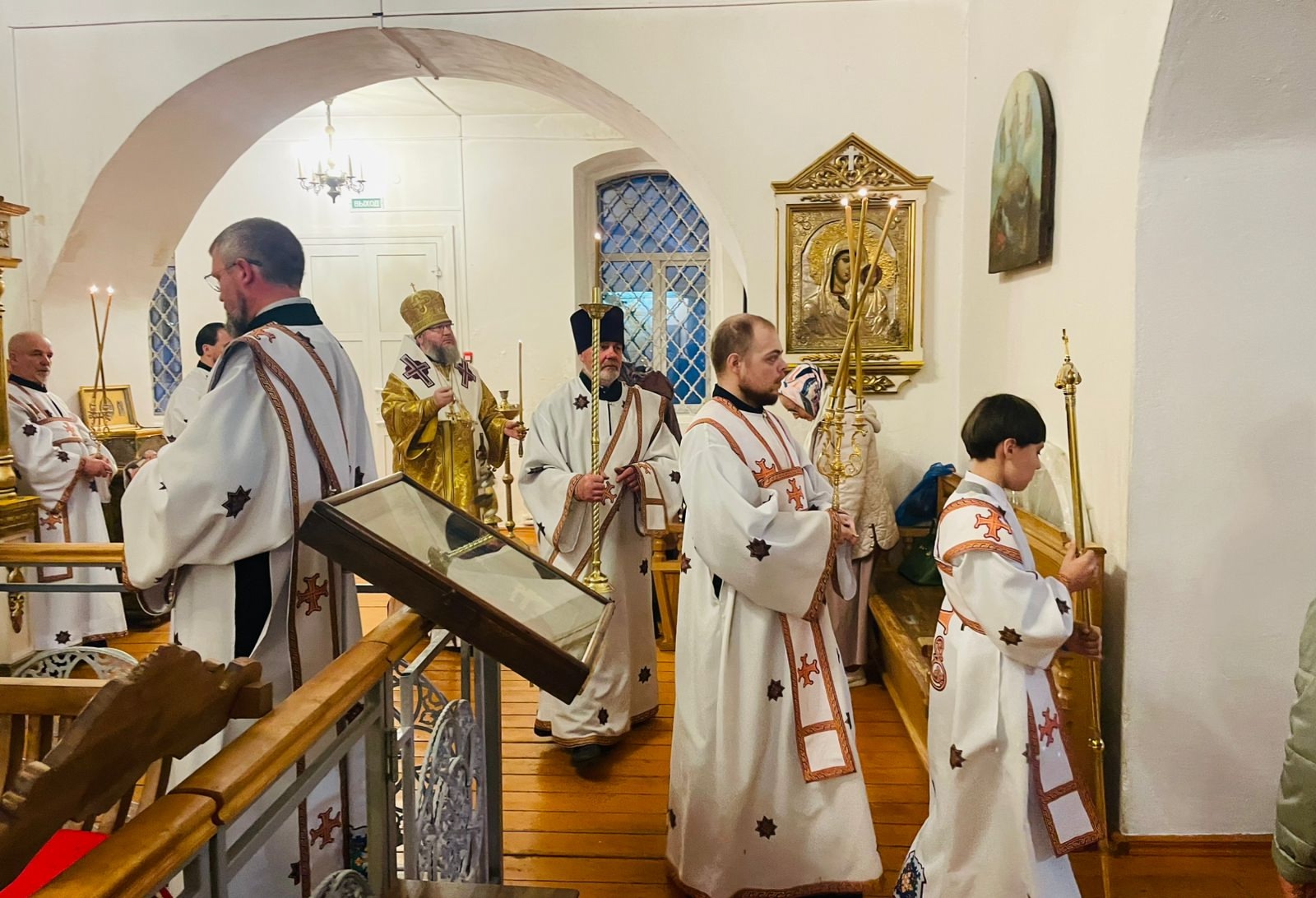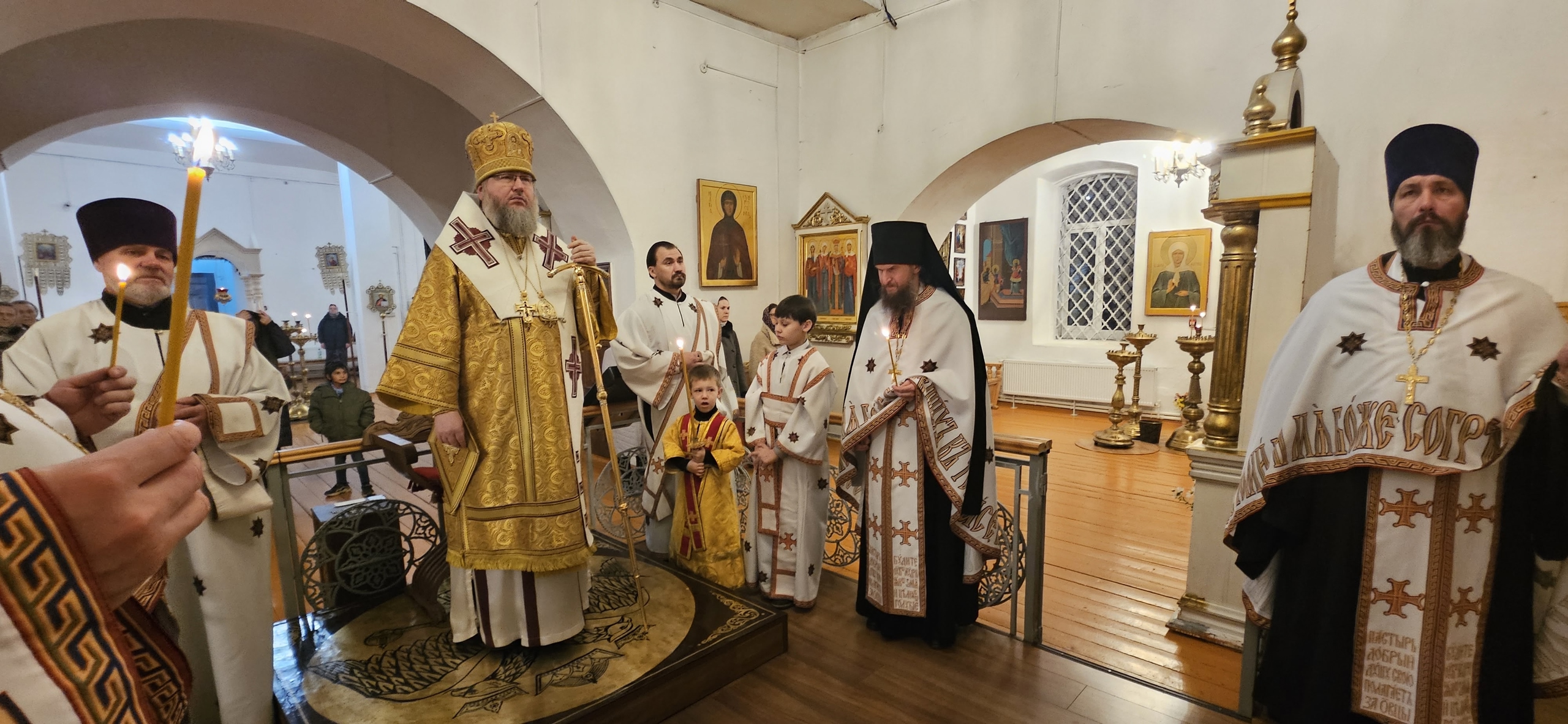 18 октября 2025 г. Преосвященный Мелетий совершил Всенощное Бдение в Спасо-Преображенском соборе г.Рославля.