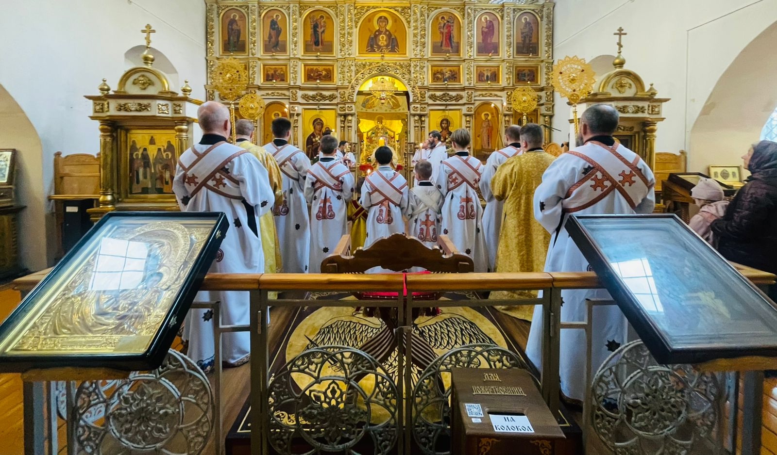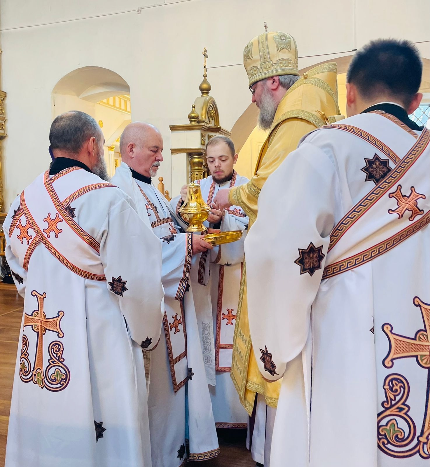 19 октября 2025 г. Преосвященный Мелетий совершил Божественную Литургию в Спасо-Преображенском соборе г.Рославля.