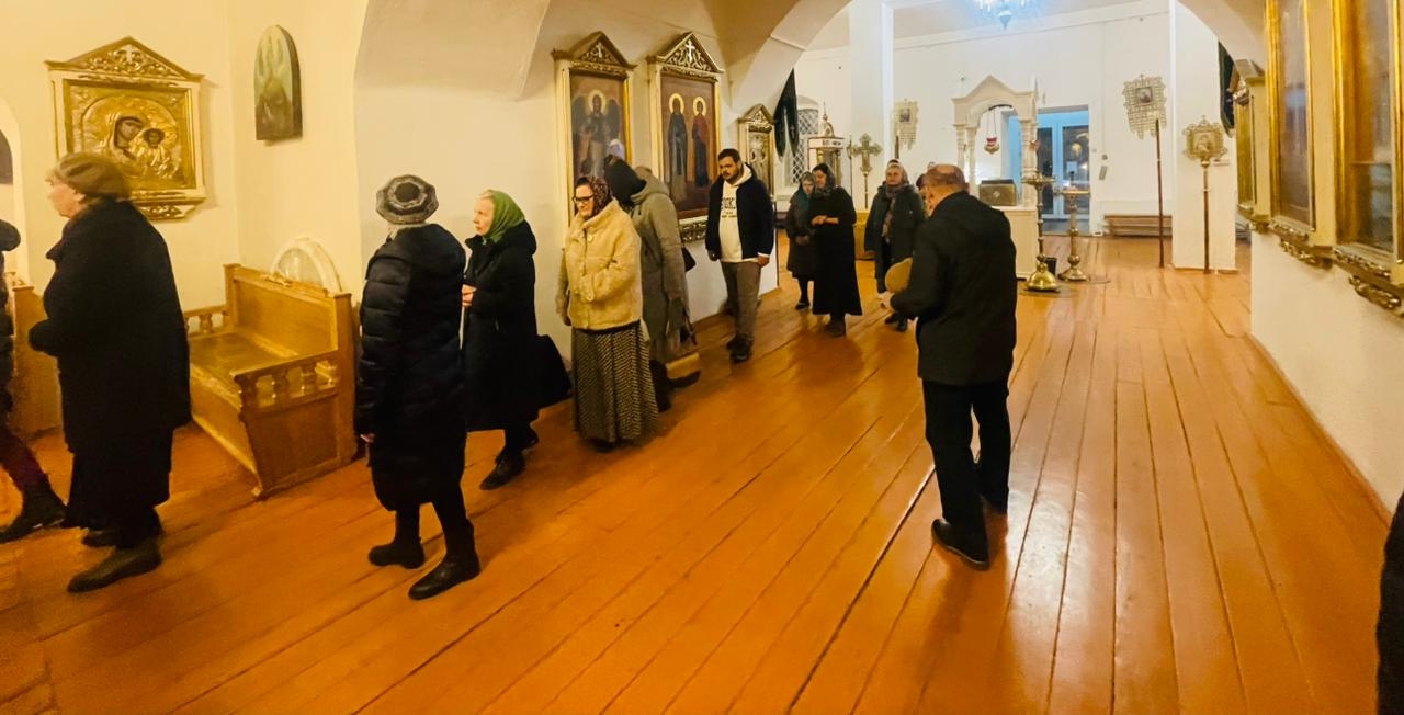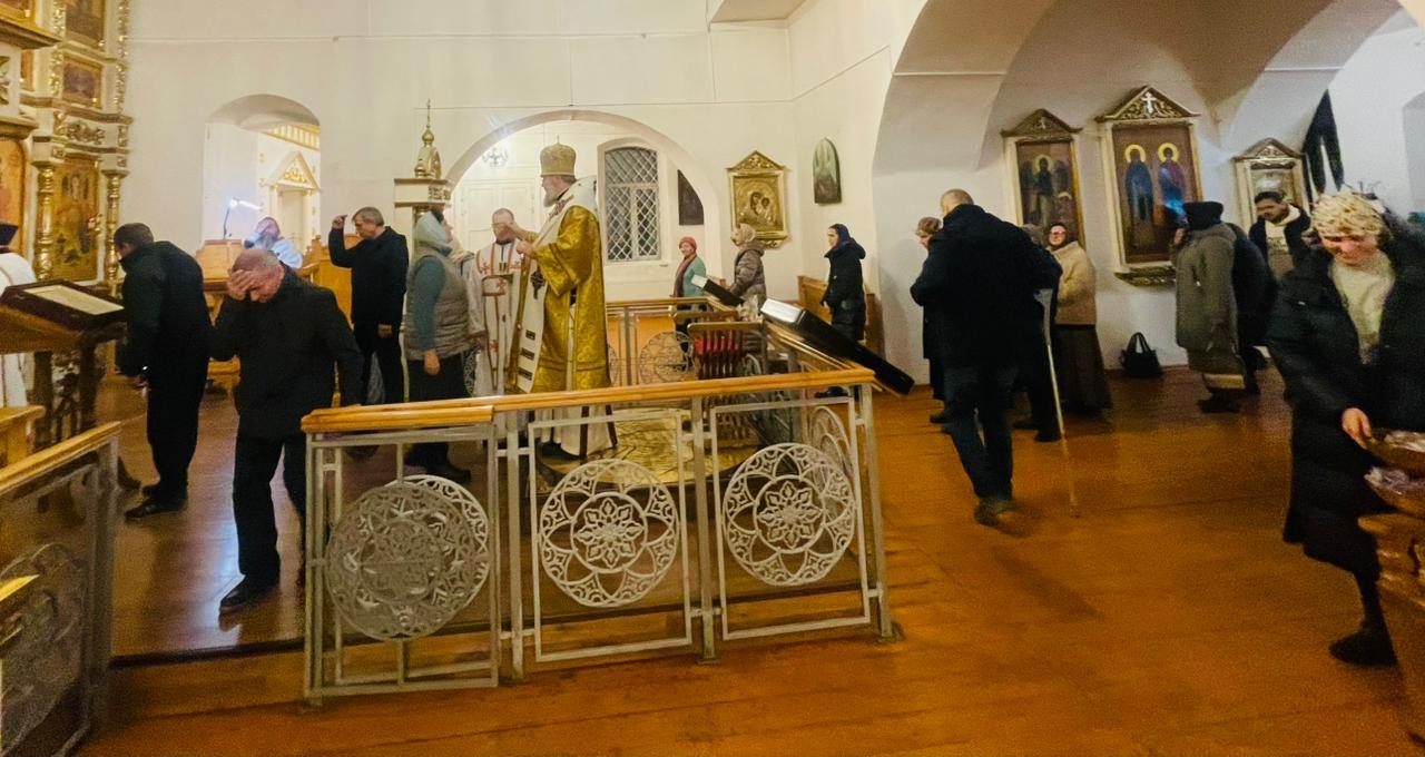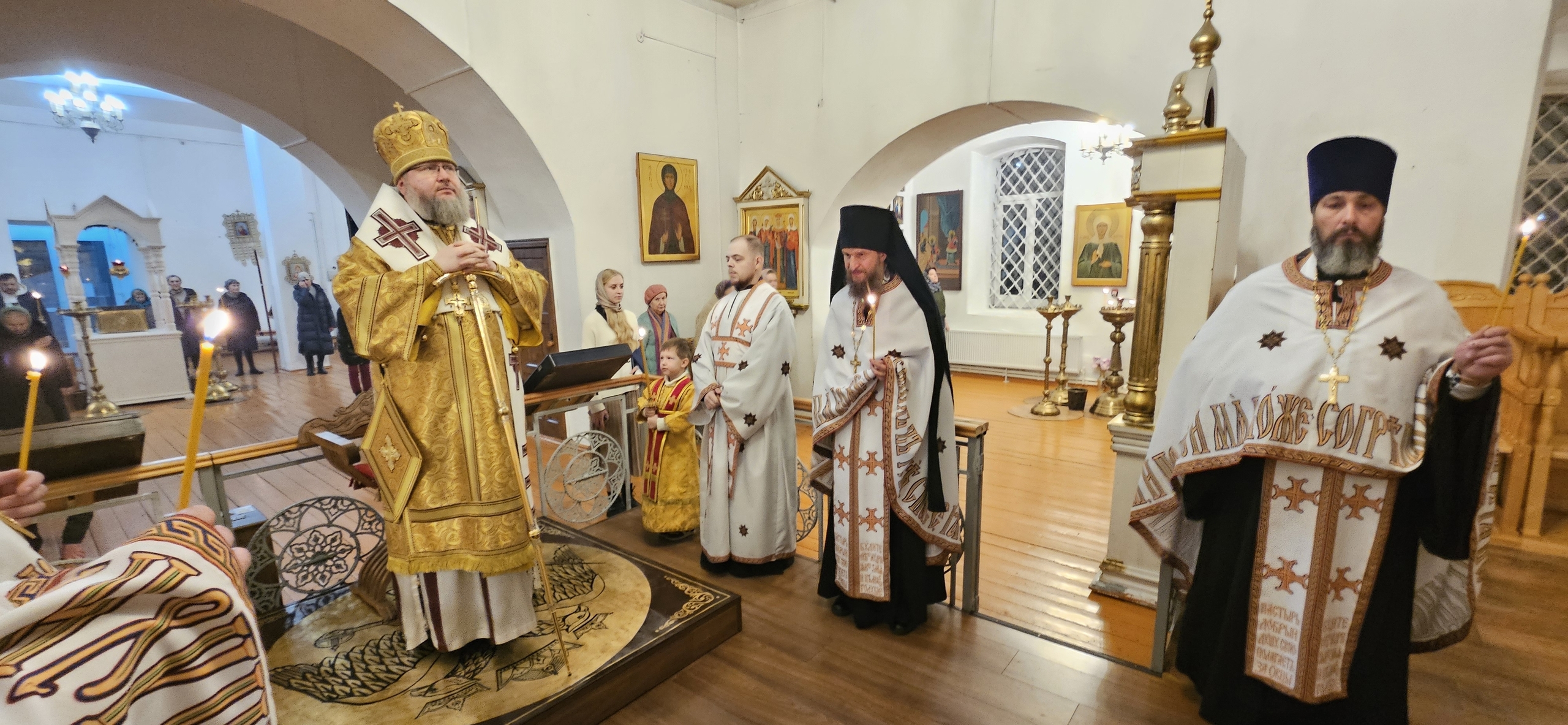 15 ноября 2025 г. Преосвященный Мелетий совершил Всенощное Бдение в Спасо-Преображенском соборе г.Рославля.