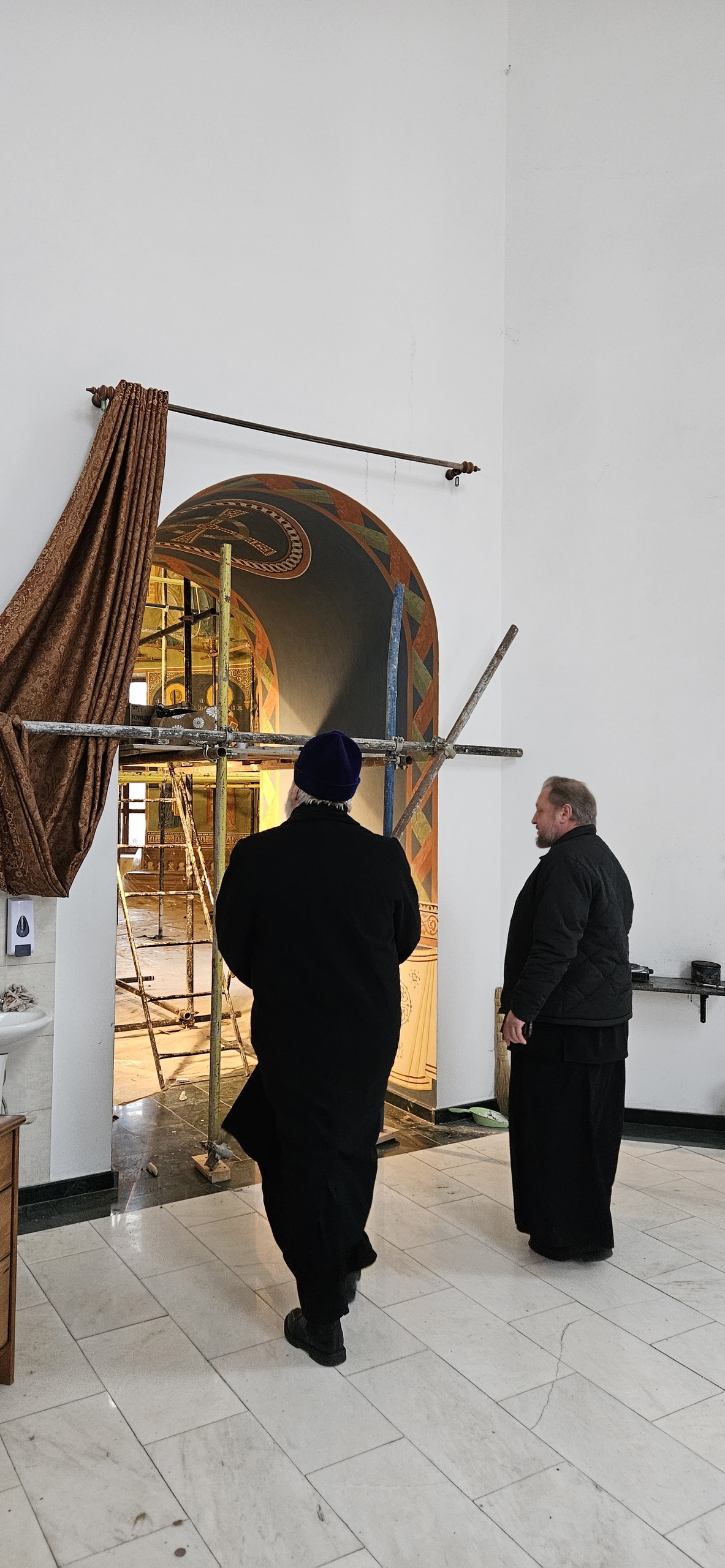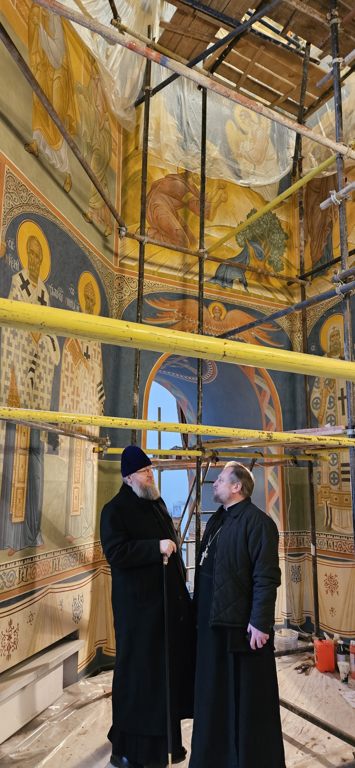 28 ноября 2025 г. Преосвященный Мелетий посетил Богородице-Скорбященский собор и осмотрел росписи алтаря.