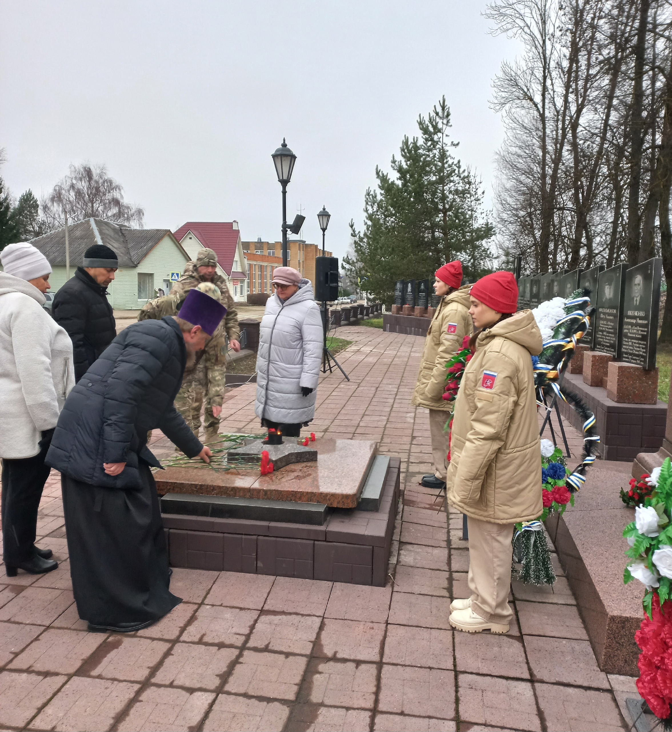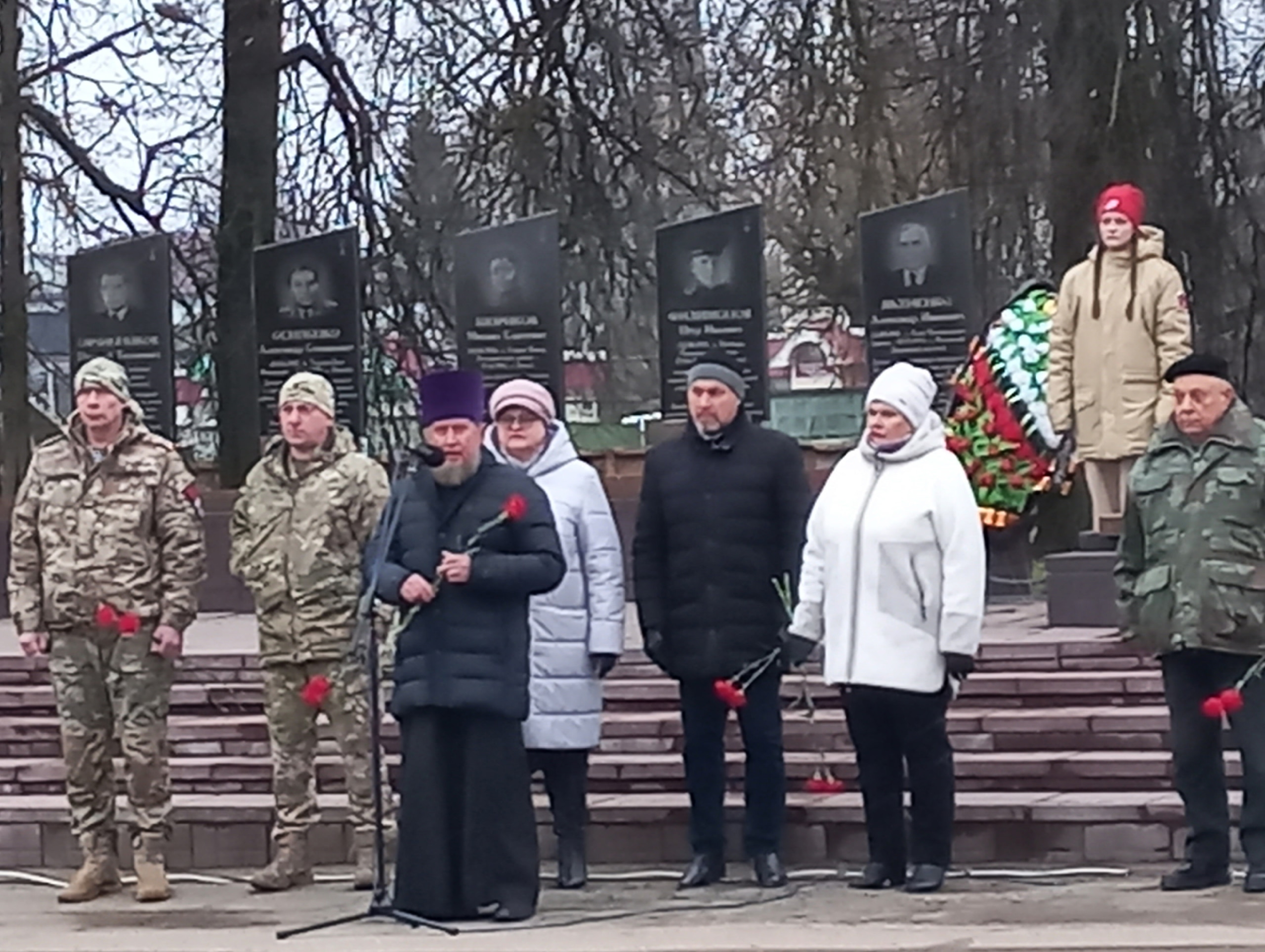 9 декабря 2025 года благочинный прот. Николай Бондар принял участие в митинге посвящённом Дню Героев Отечества.