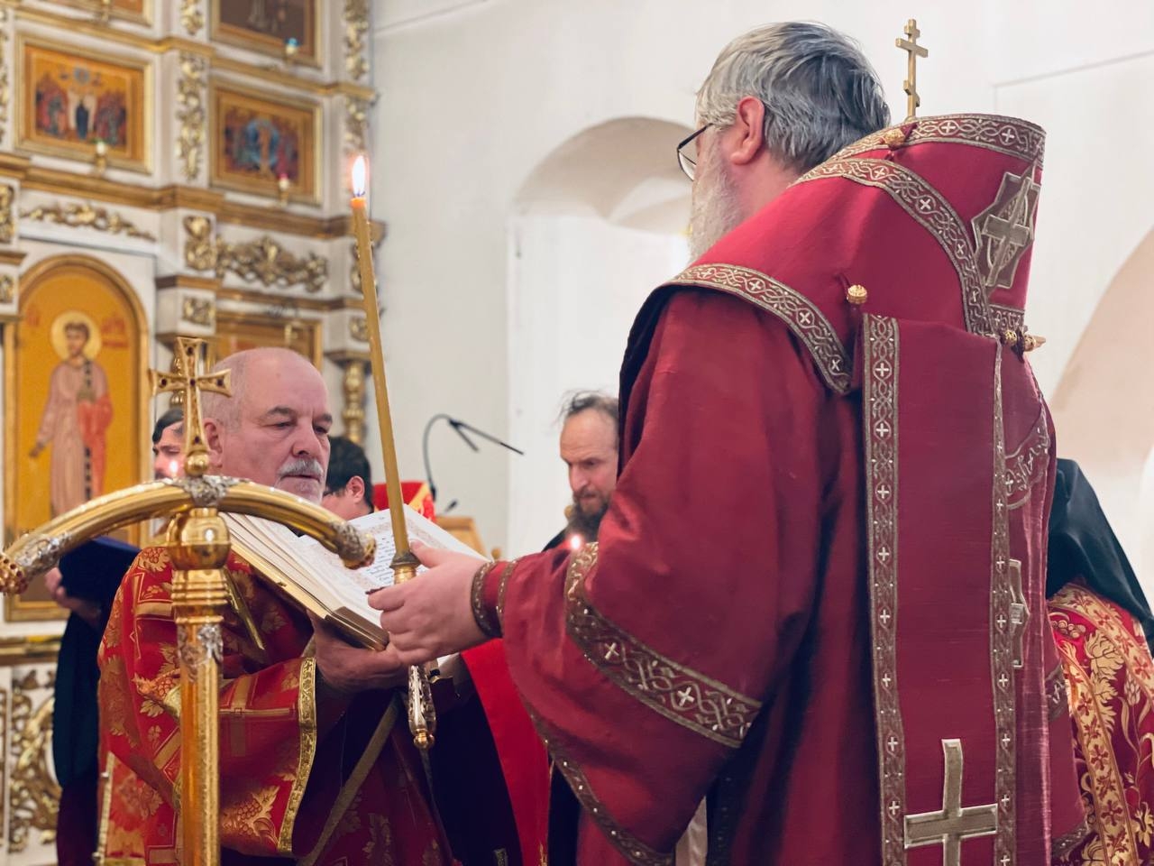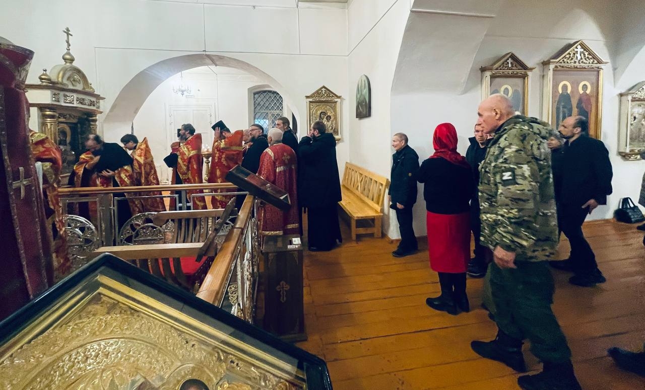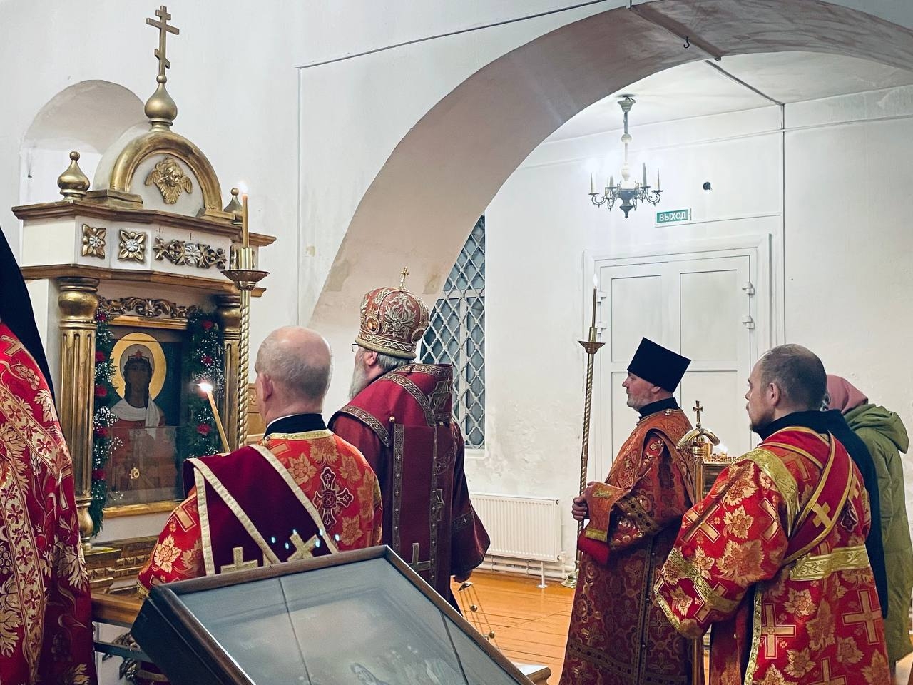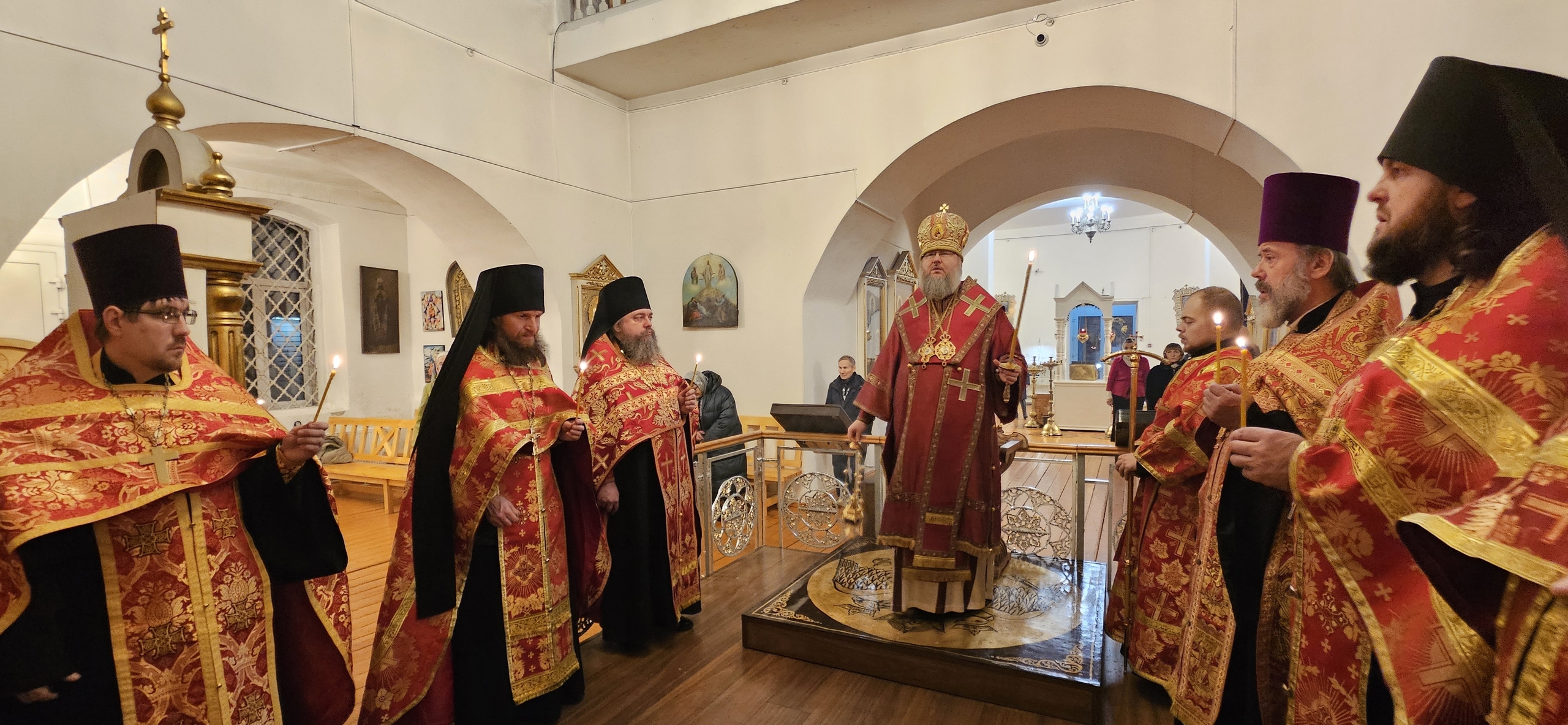 16 декабря 2025 г., в канун памяти вмц. Варвары, Преосвященный Мелетий совершил Всенощное Бдение в Спасо-Преображенском соборе г.Рославля.