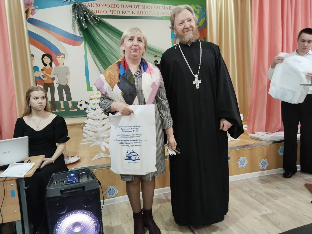 С напутственным словом о высоком и значимом служении Русской Православной Церкви в истории страны, раскрывающим непреходящие ценности православной веры и культуры, к участникам чтений обратился Епископ Рославльский и Десногорский Мелетий. Важную роль Православной веры в нравственном выборе человека и значение традиционных духовно-нравственных ценностей в его жизни отметил в своем выступлении перед собравшимися заместитель Главы муниципального образования «Рославльский муниципальный округ» Смоленской области Сергей Викторович Филипченко.