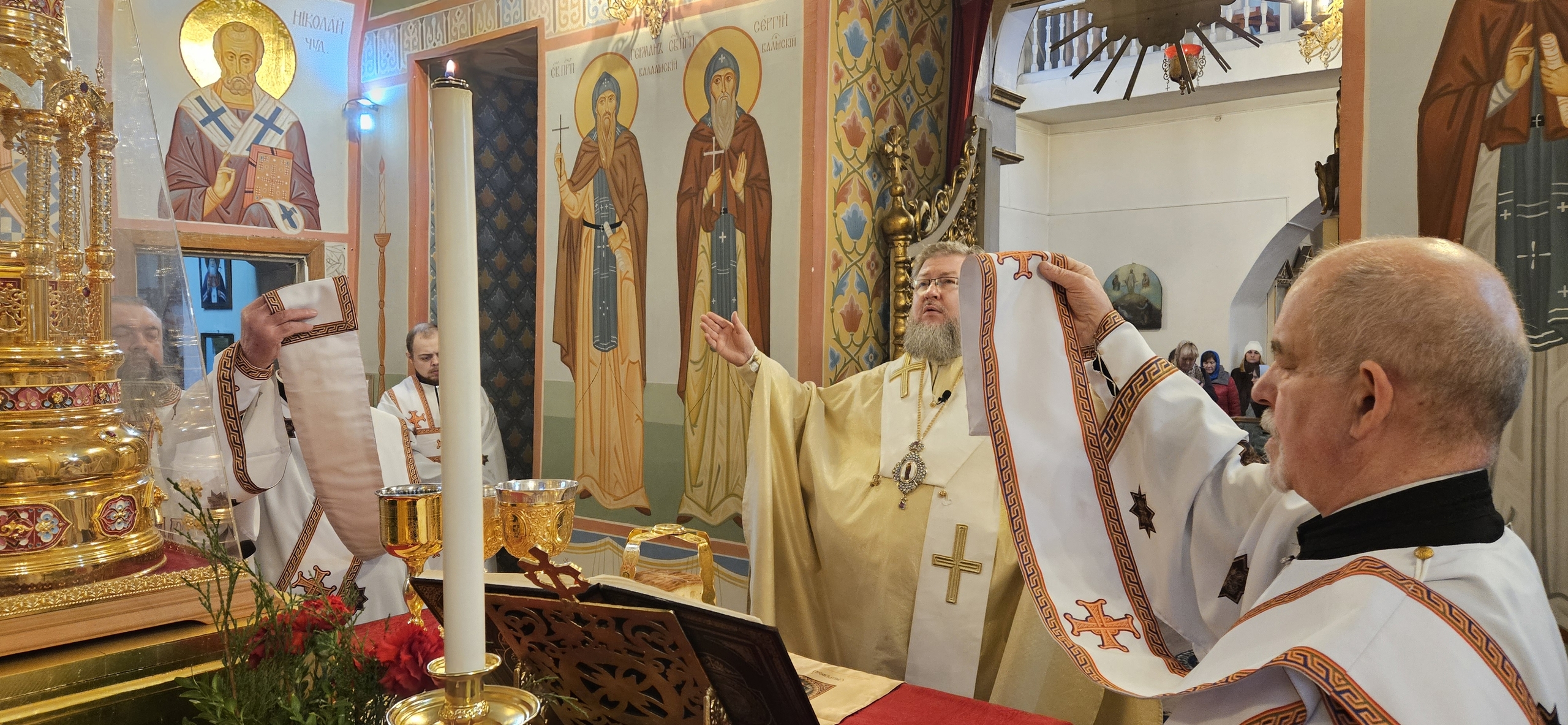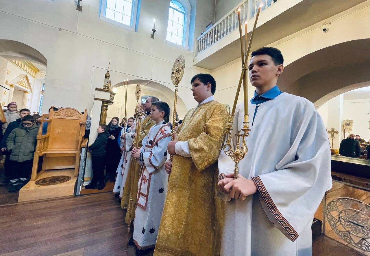 19 декабря 2025 г., в празднование дня памяти святителя Николая чудотворца, Преосвященный Мелетий совершил Божественную Литургию в Спасо-Преображенском соборе г.Рославля.