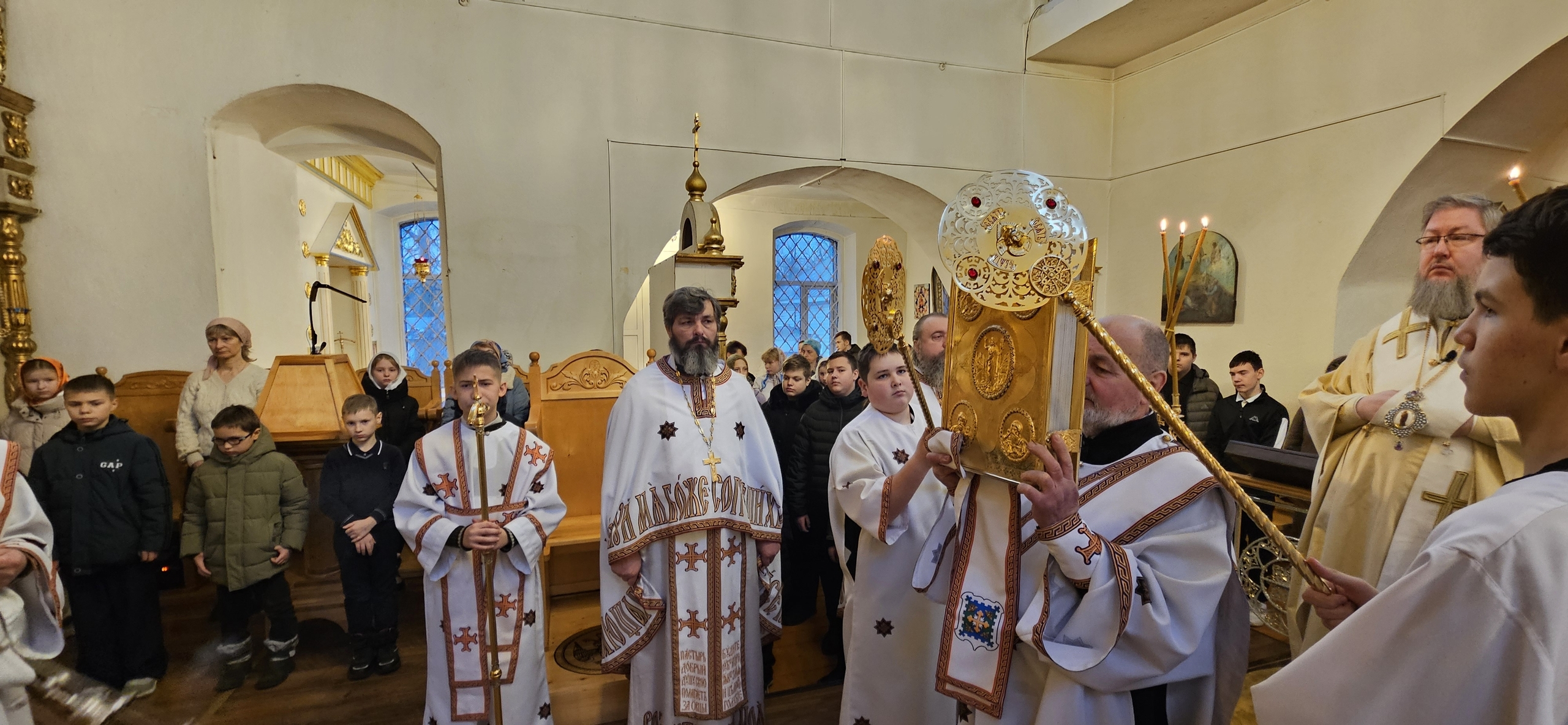 25 декабря 2025 г., в день памяти святителя Спиридона Тримифунтского Преосвященный Мелетий совершил Божественную Литургию в Спасо-Преображенском соборе г.Рославля.