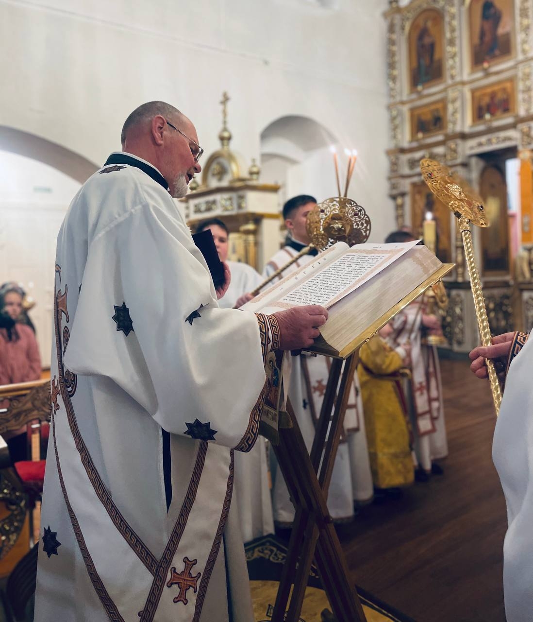 За богослужением молились: заместитель председателя Правительства Смоленской области — министр здравоохранения Смоленской области В.Н. Макарова и уполномоченный по правам ребенка в Смоленской области В. М. Хомутова