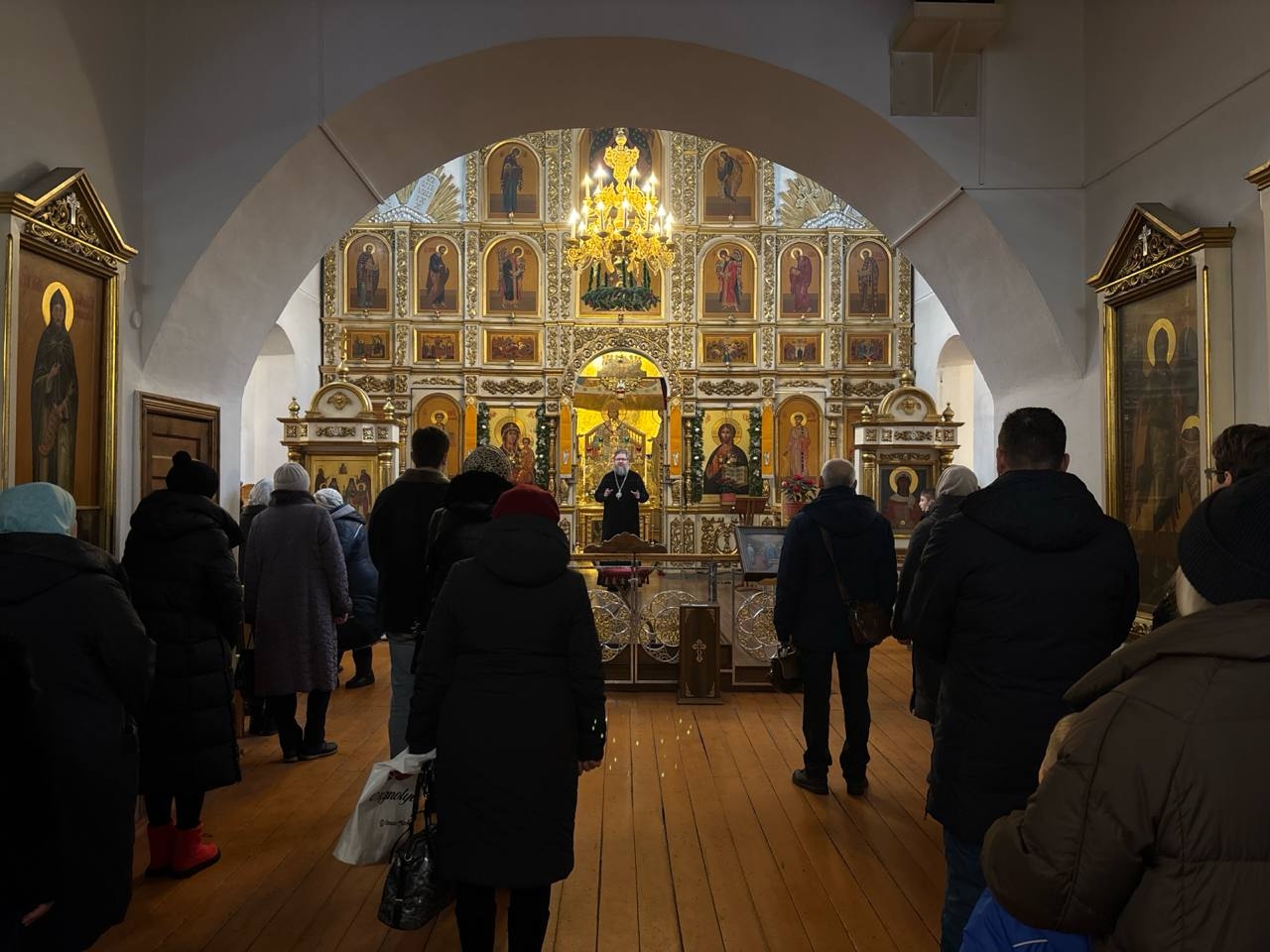 7 января 2026 г. Преосвященный Мелетий молился за поздней Литургией в Спасо-Преображенском соборе г.Рославля. По окончании богослужения обратился к молящимся со словом.