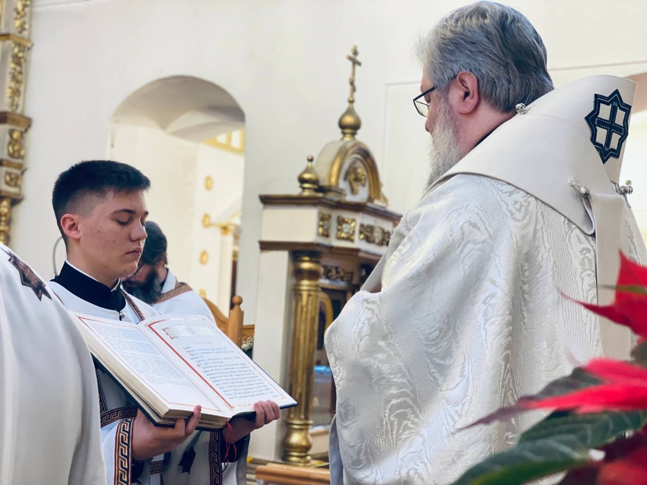 6 января 2026 года, в Сочельник Рождества Христова, Преосвященный Мелетий совершил Божественную Литургию Василия Великого в Спасо-Преображенском соборе г.Рославля.