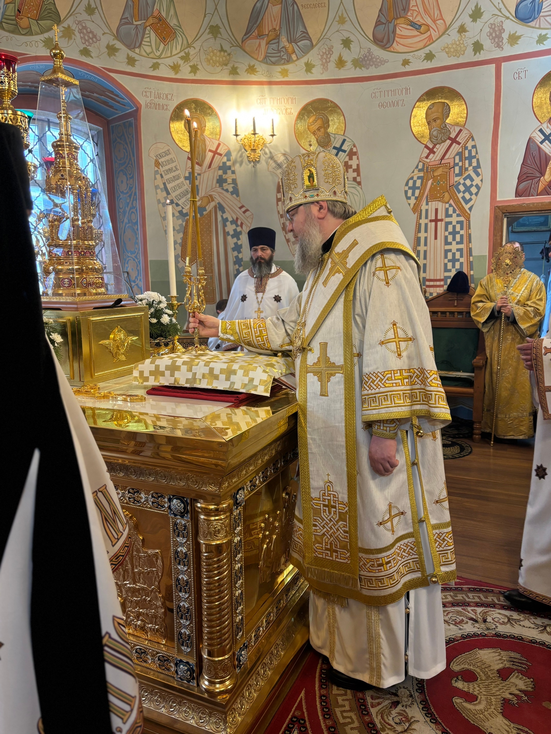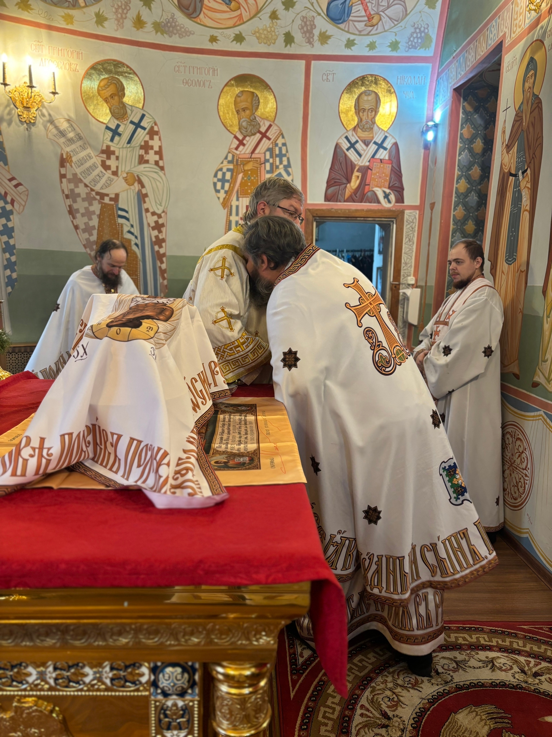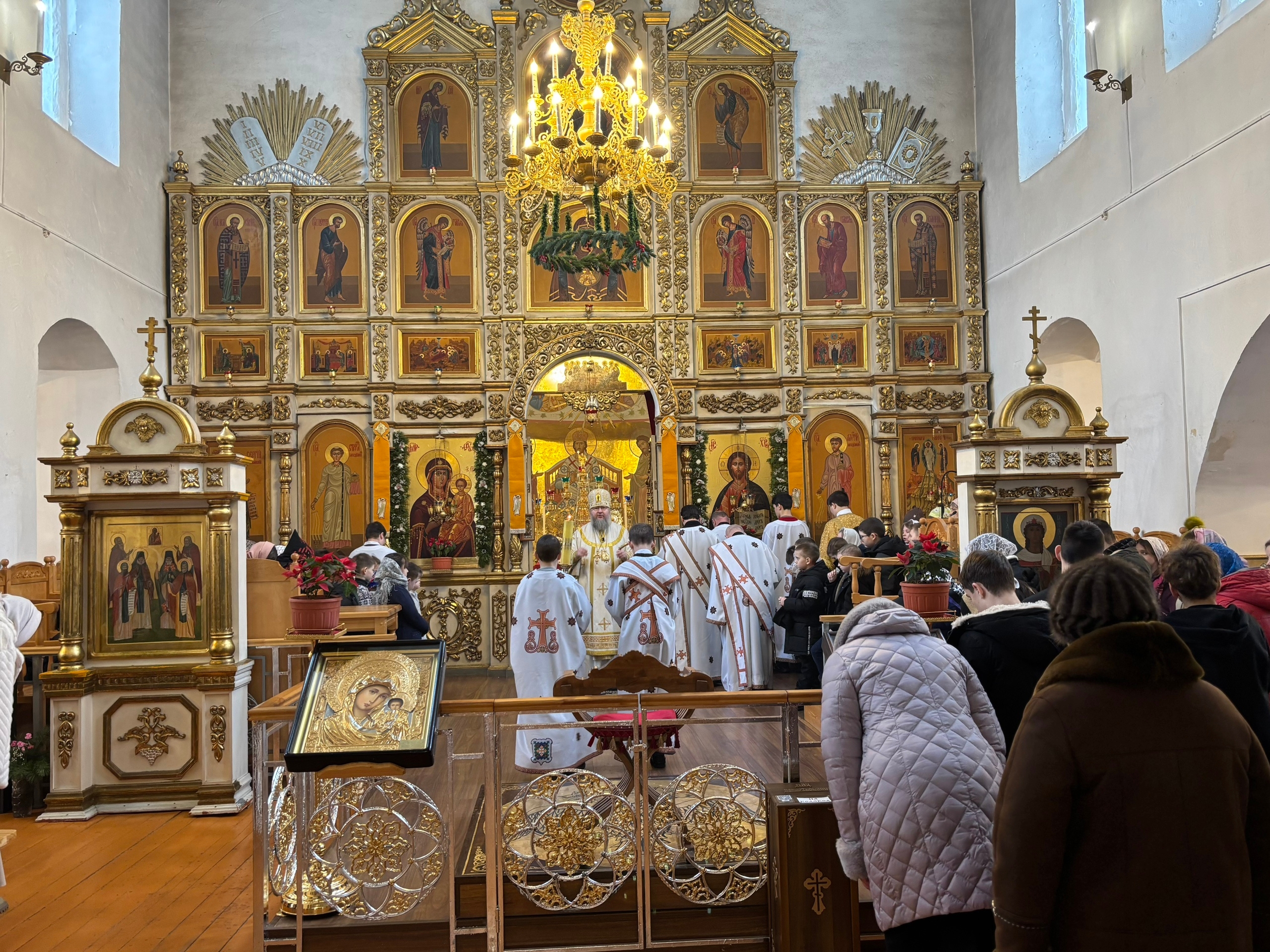 14 января 2026 г., в праздник Обрезания Господня, Преосвященный Мелетий совершил Божественную Литургию в Преображенском соборе Спасо-Преображенского монастыря г.Рославля.