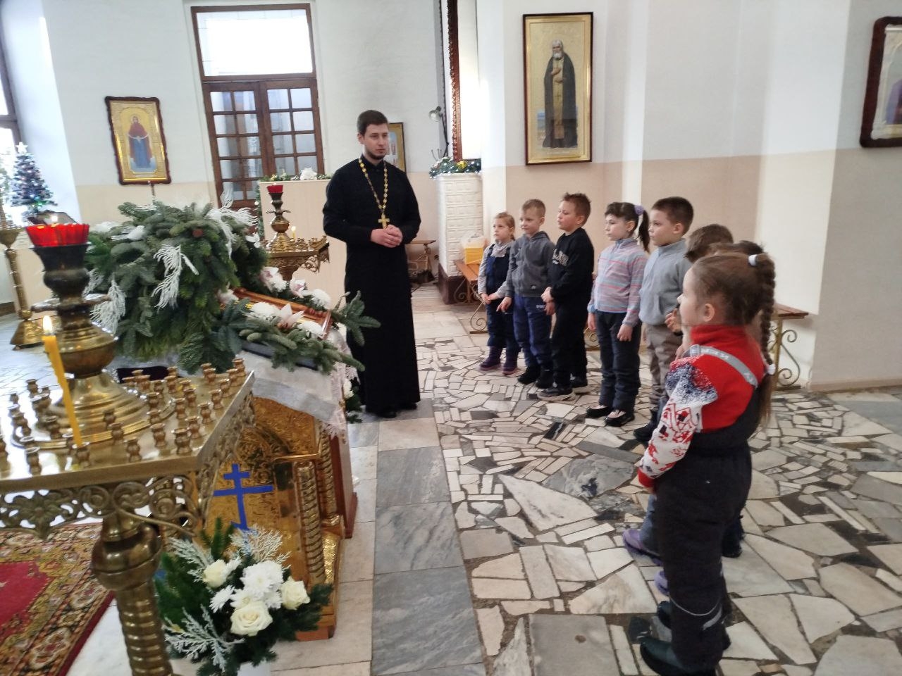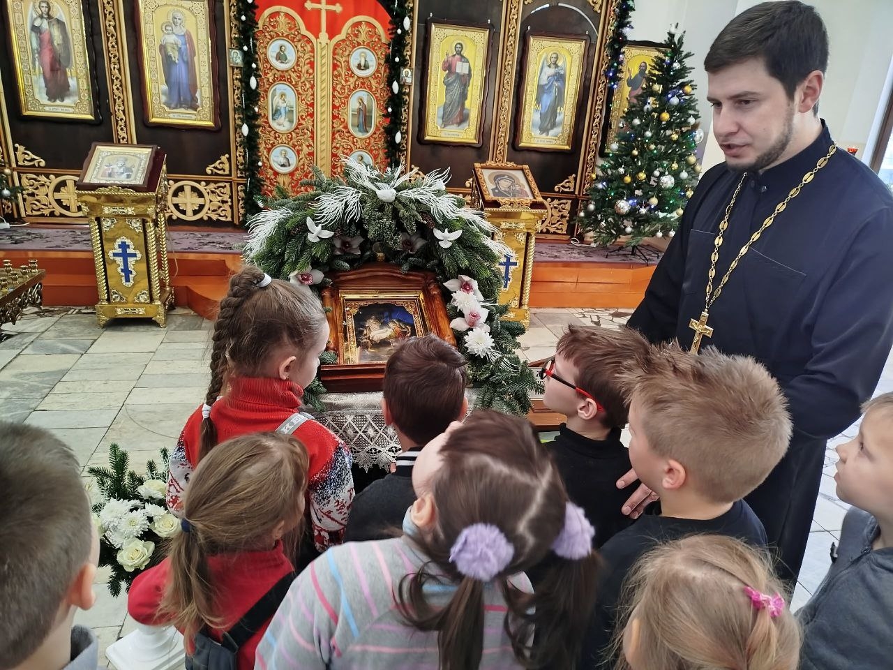 Экскурсию по храму провел настоятель священник Николай Бондар. В ходе общения с ребятами поговорили о главном празднике, который верующие отмечают в эти святочные дни — о Рождестве Христовом.