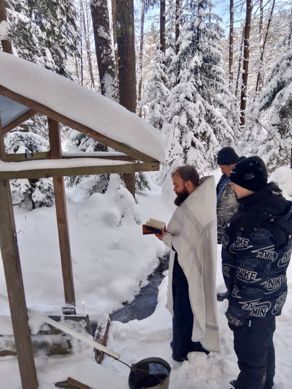 Вечером 18 января, в праздник Богоявления, настоятель храма Николая Чудотворца в селе Ворга иерей Иоанн Привалов совершил чин Великого Освящения воды на лесном источнике 12 апостолов с.Ворга и на святом источнике Серафима Саровского в деревне Старое Максимково.