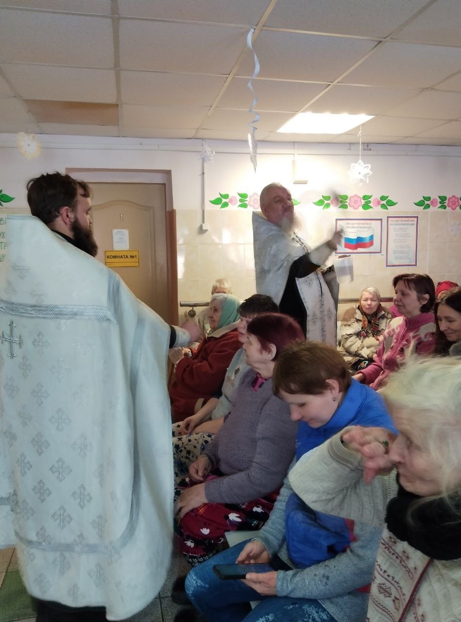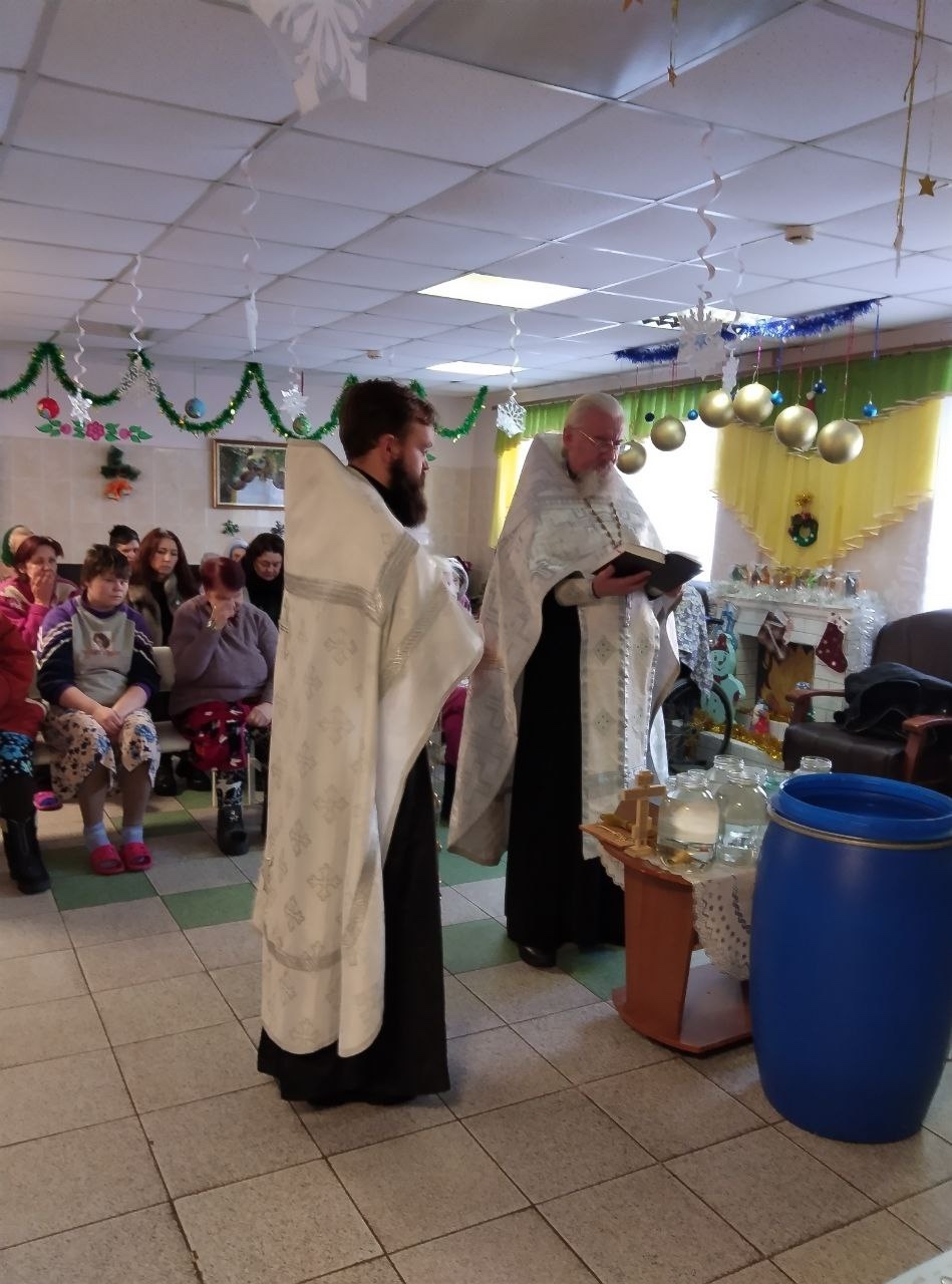 В праздник Крещения Господня благочинный Ершичского церковного округа иеромонах Вонифатий и настоятель храма святителя Николая Чудотворца в селе Ворга иерей Иоанн Привалов посетили Воргинский психоневрологический интернат.