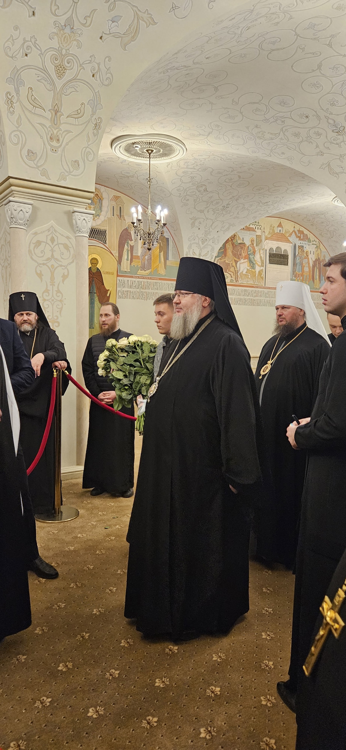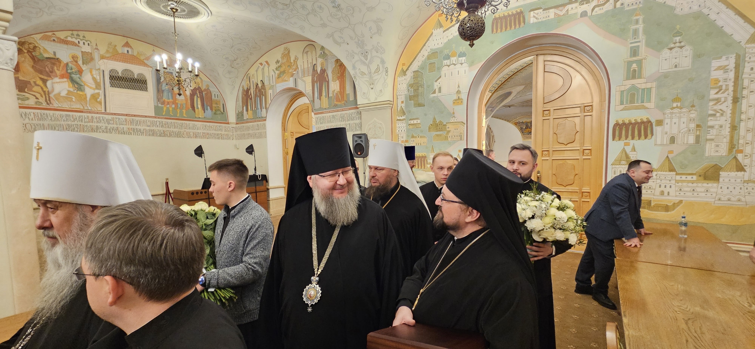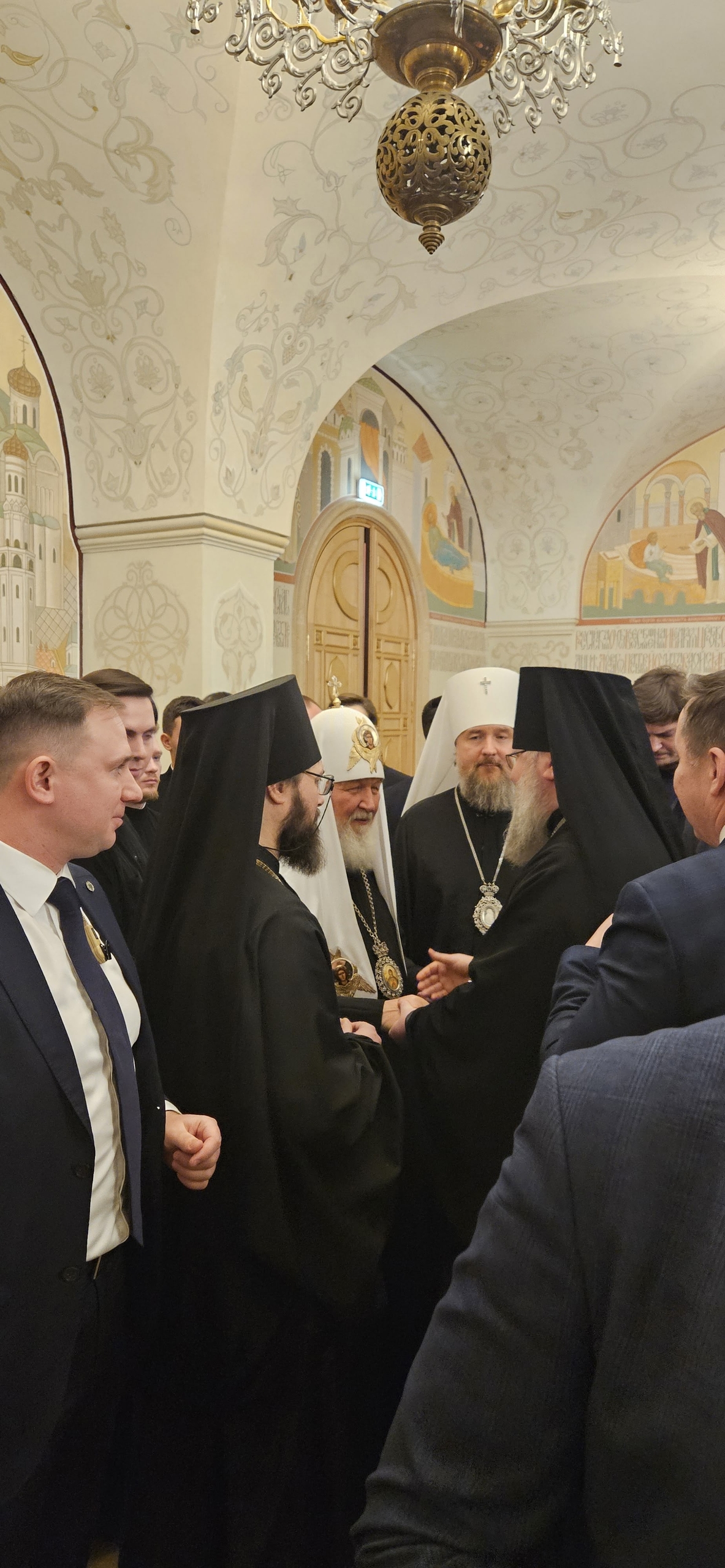 1 февраля 2026 г., Преосвященный Мелетий поздравил Святейшего Патриарха Кирилл с интронизацией в Сергиевском зале Храма Христа Спасителя.