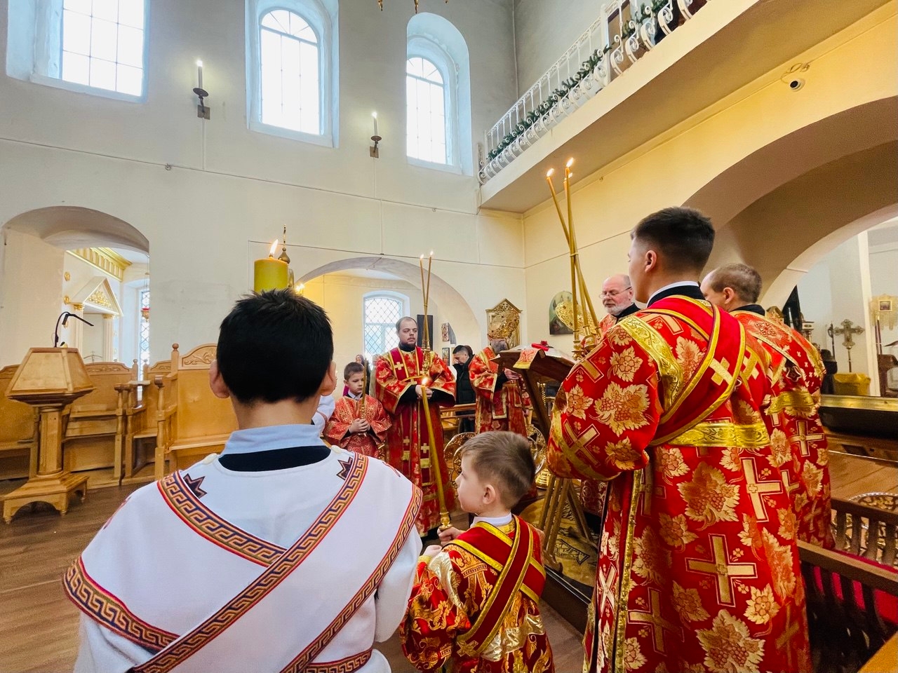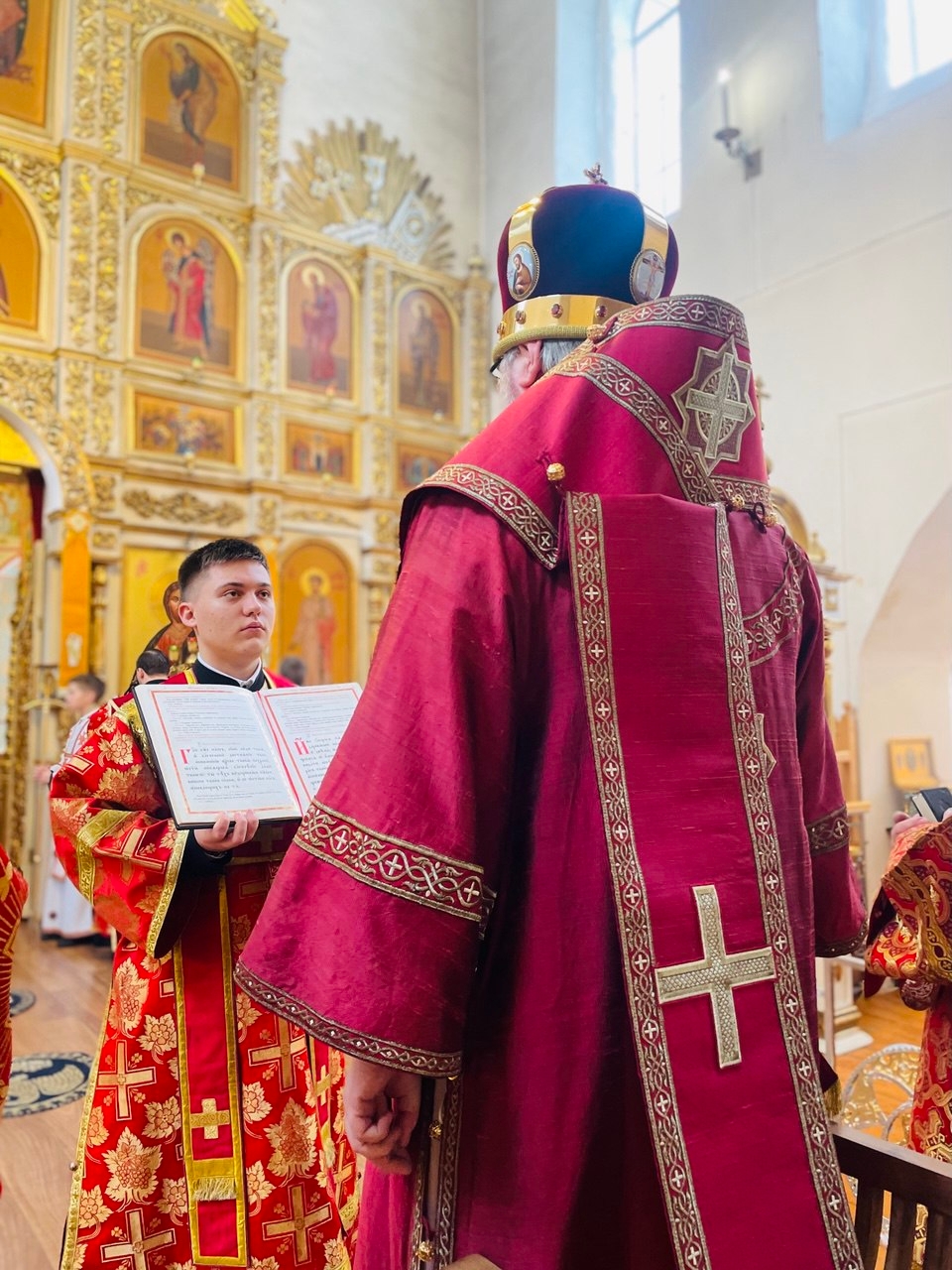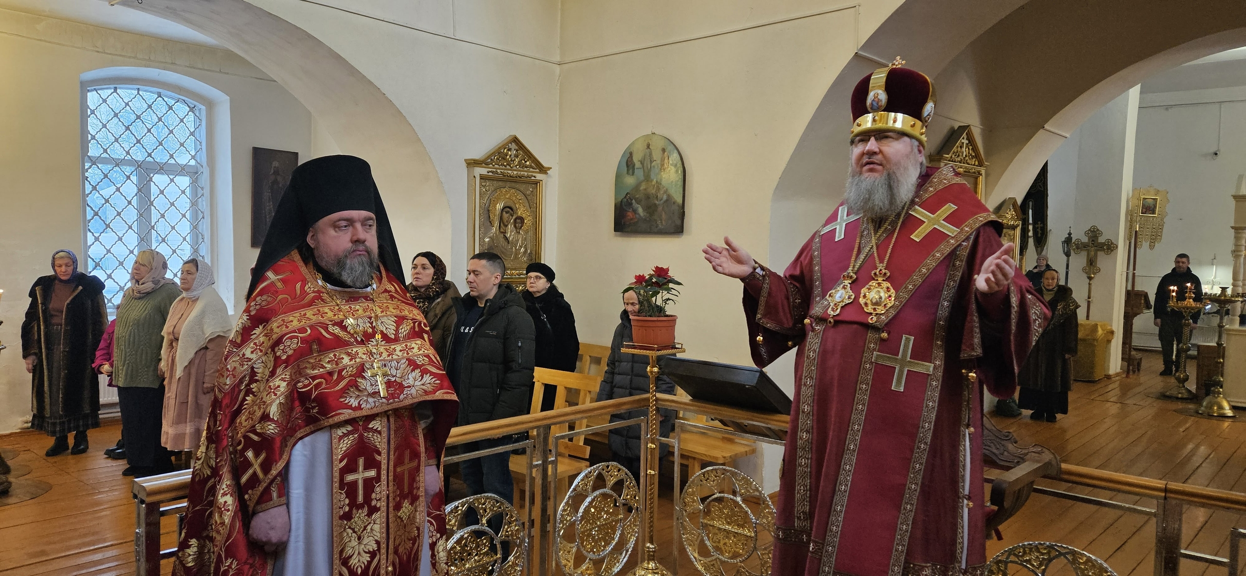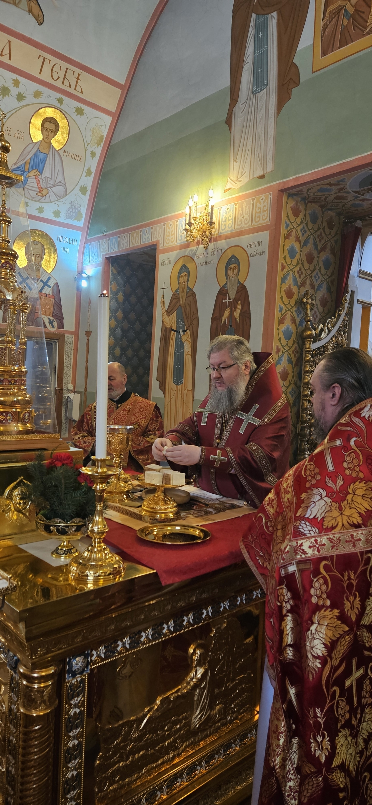 8 февраля 2026 г. Преосвященный Мелетий совершил Божественную Литургию в Преображенском соборе Спасо-Преображенского мужского монастыря города Рославля.
