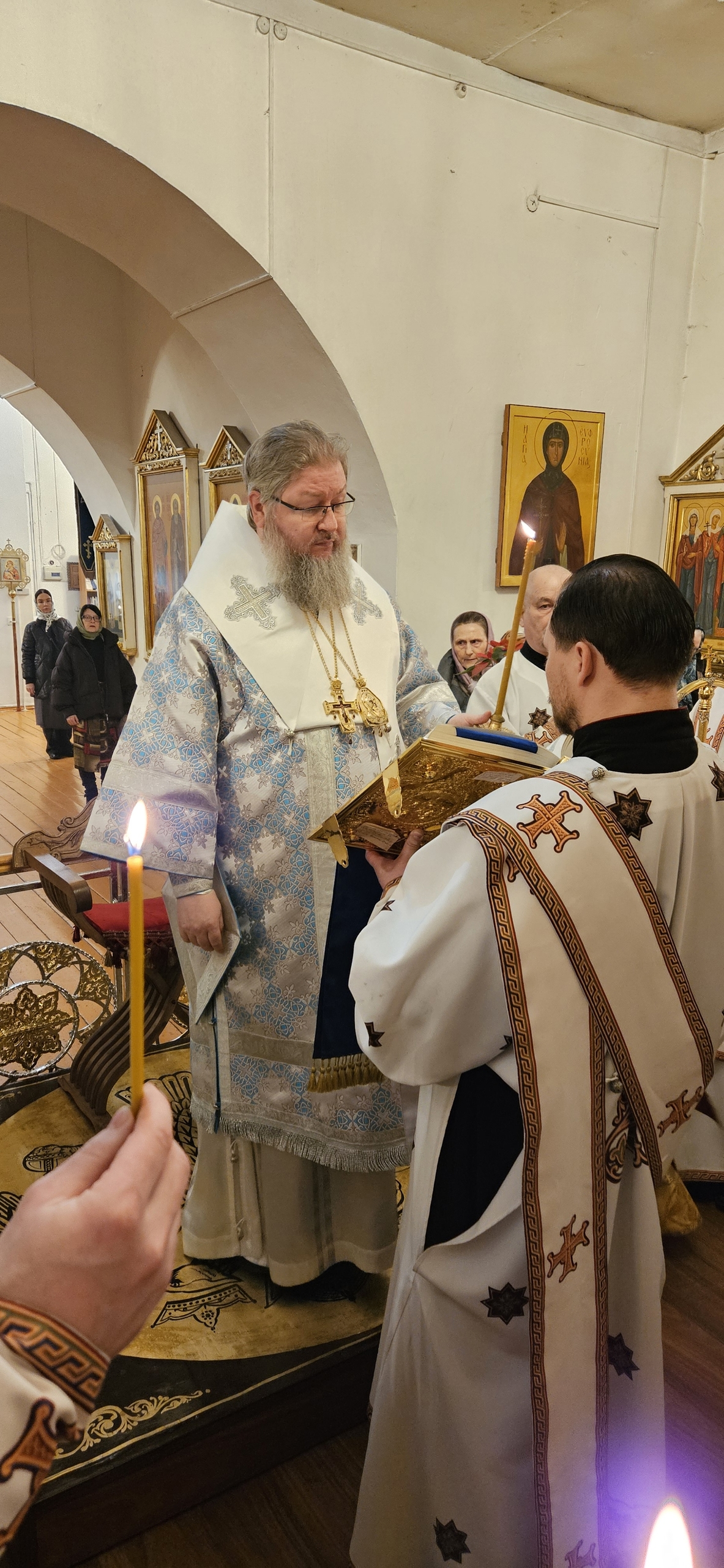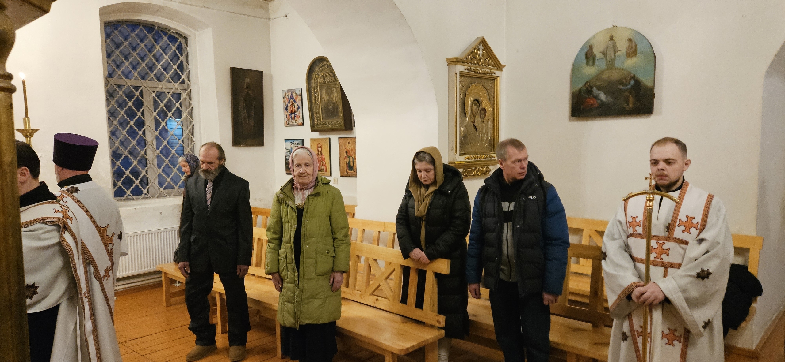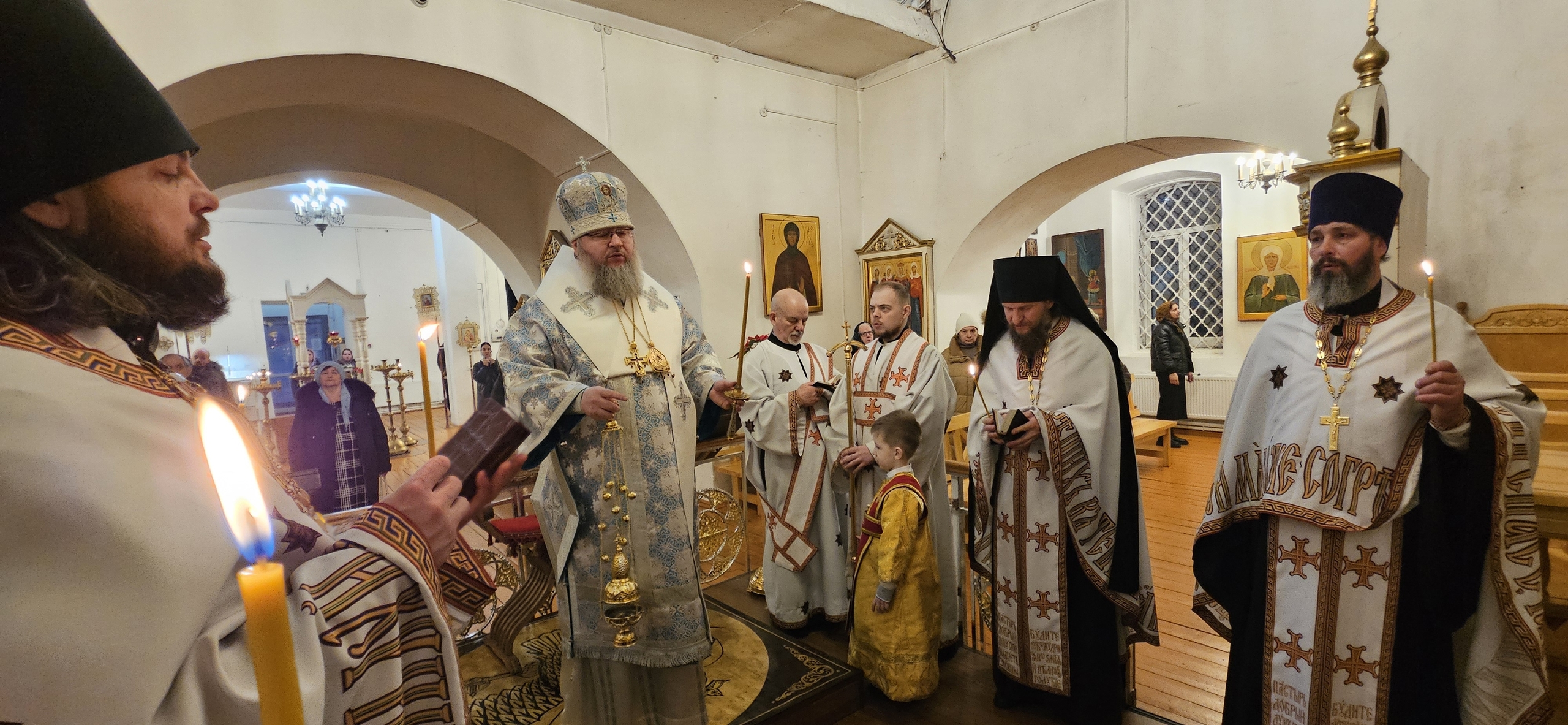14 февраял 2026 г., в канун праздника Сретия Господня, Преосвященный Мелетий совершил Всенощное Бдение в Преображенском соборе, Спасо — Преображенского мужского монастыря города Рославля.