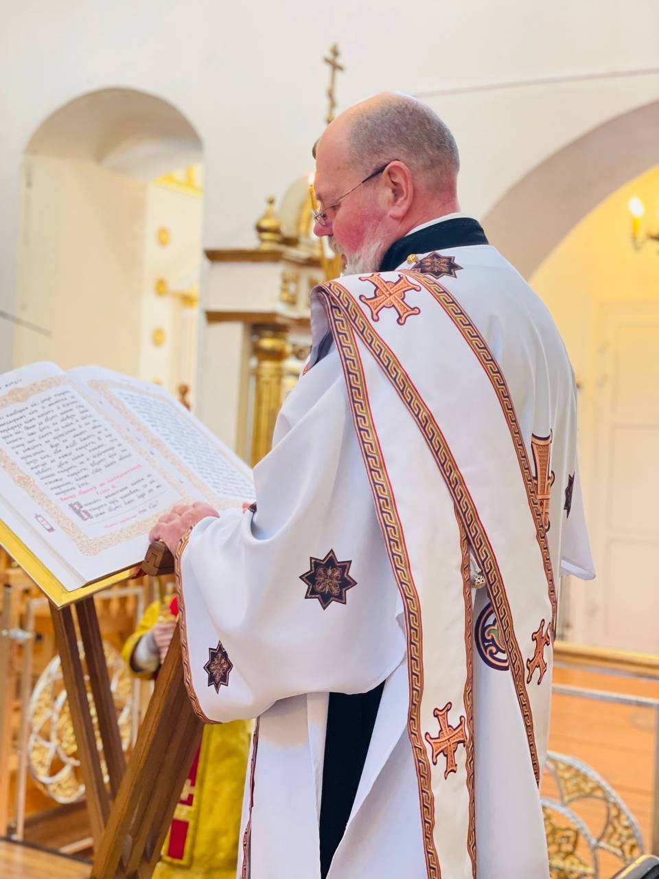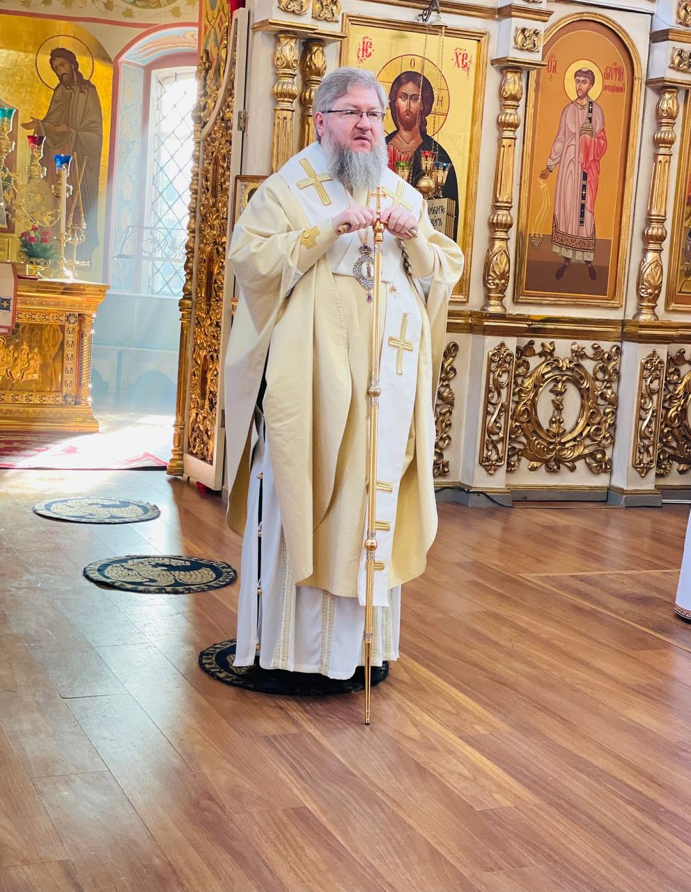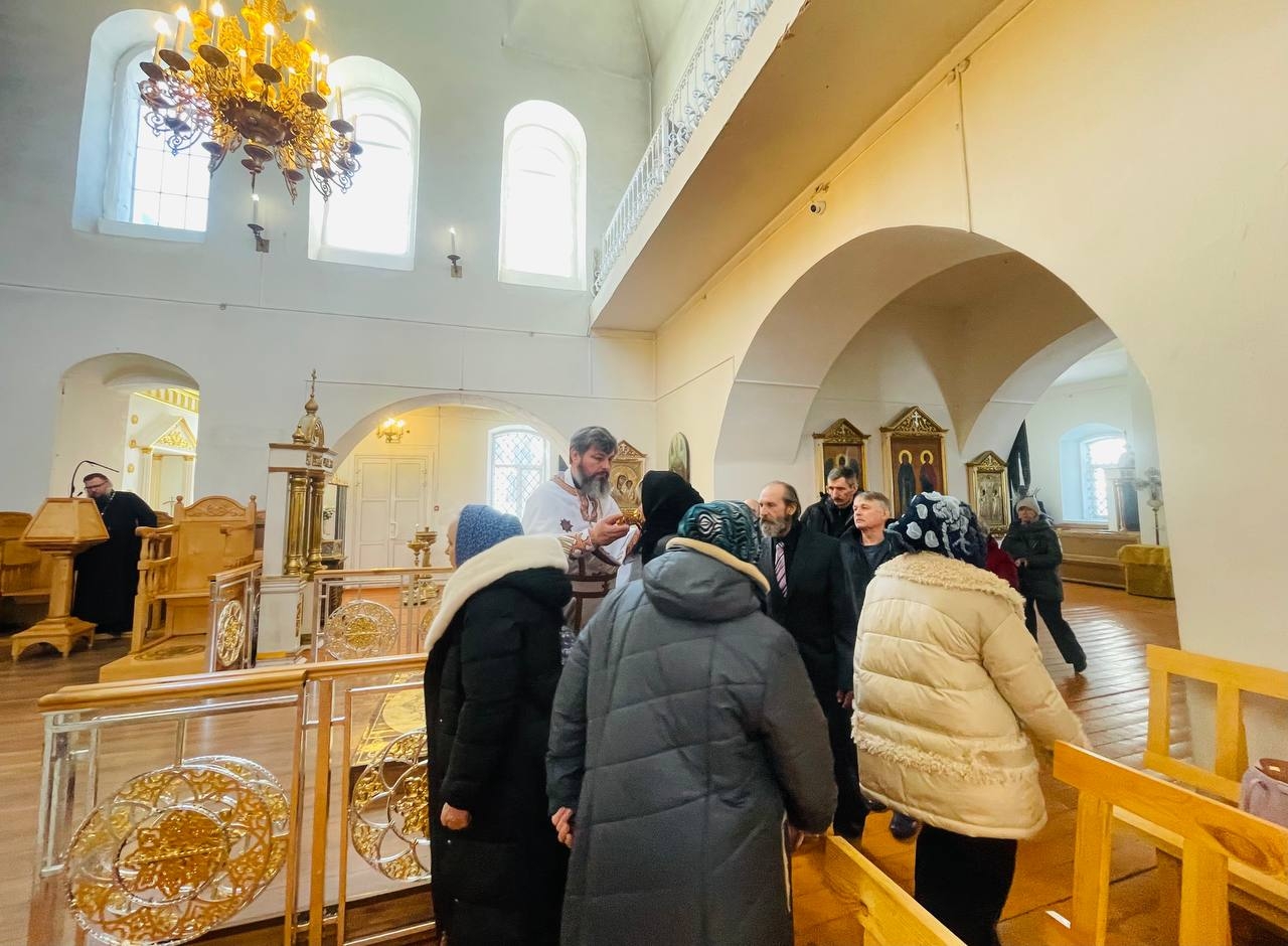 21 февраля 2026 г. Преосвященный Мелетий совершил Божественную Литургию в в Преображенском соборе, Спасо — Преображенского мужского монастыря города Рославля.