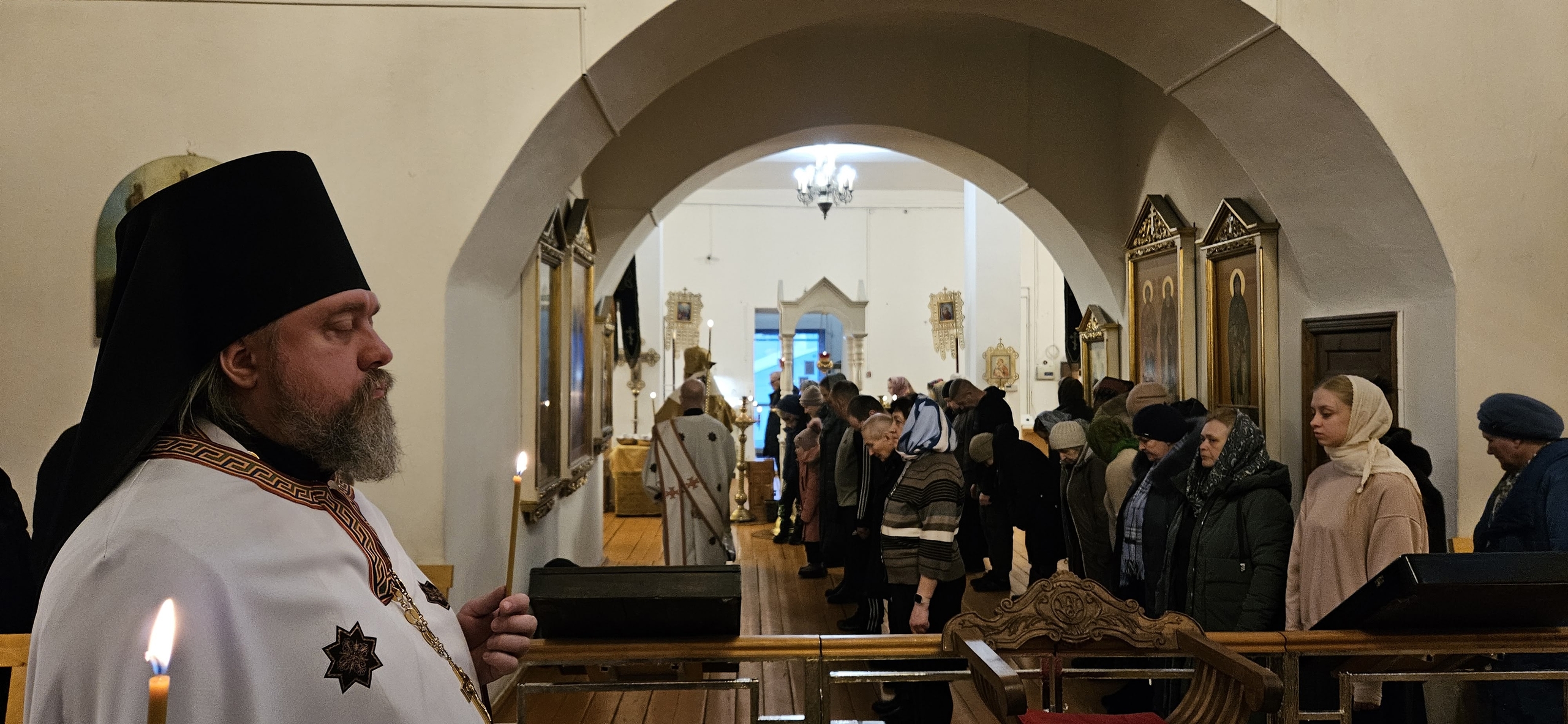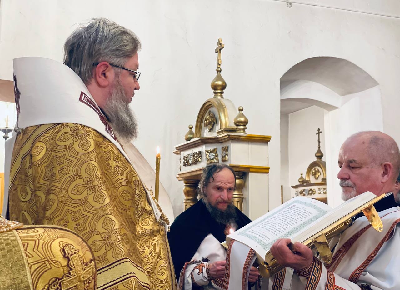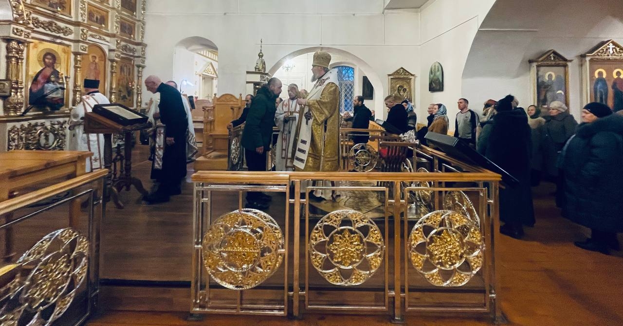 21 февраля 2026 г. Преосвященный Мелетий совершил Всенощное Бдение в Преображенском соборе, Спасо — Преображенского мужского монастыря города Рославля.