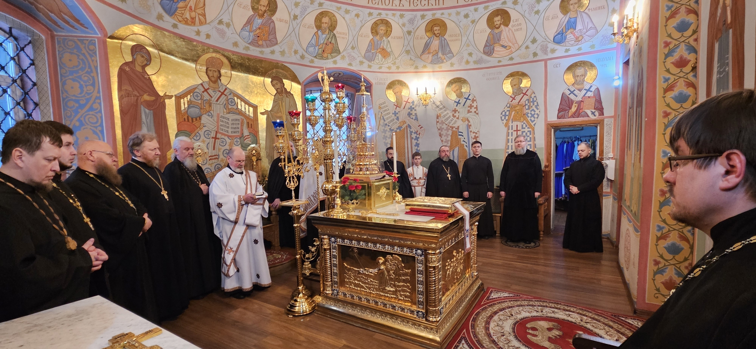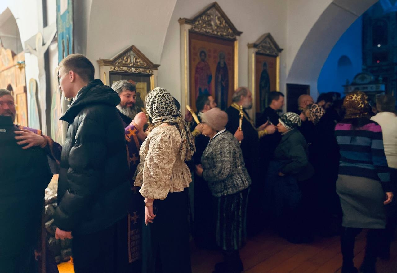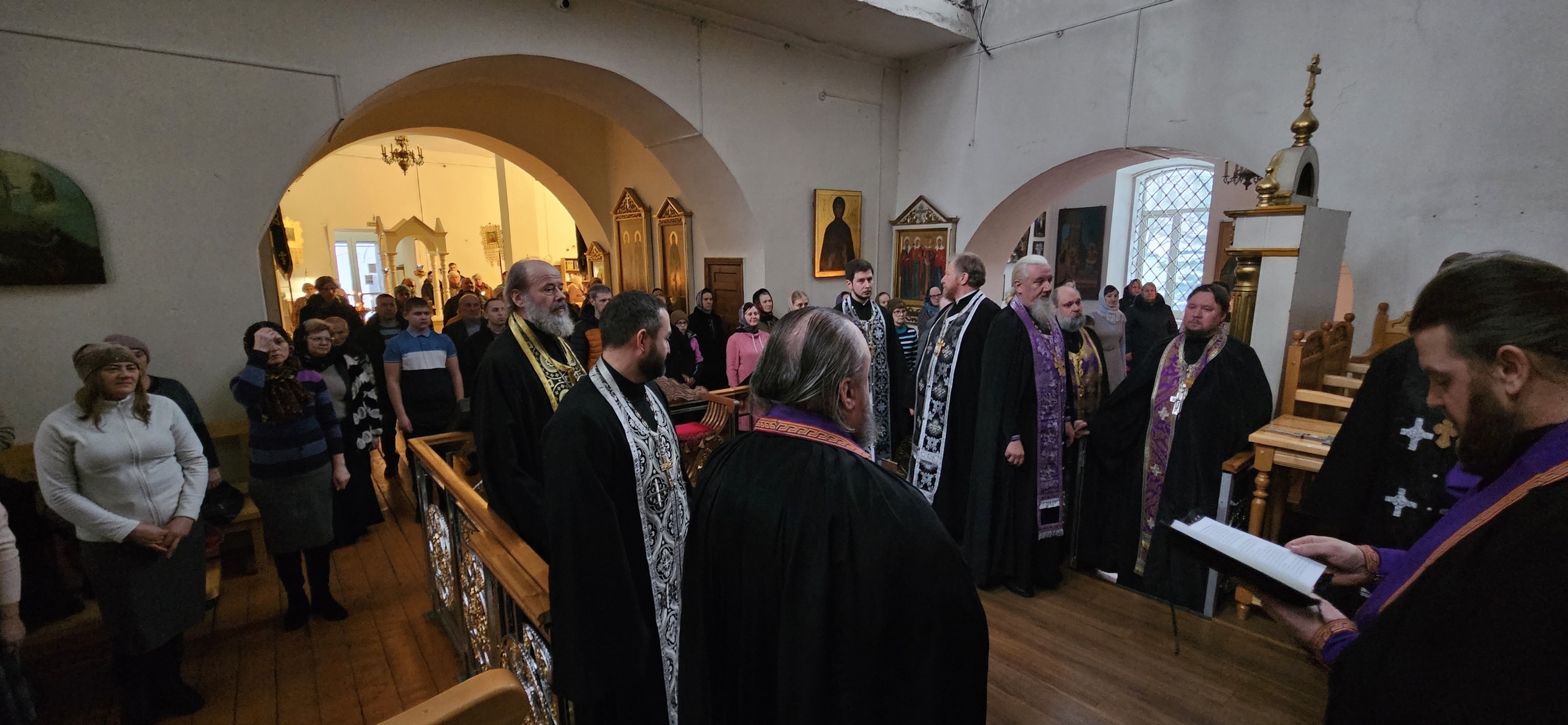 22 февраля 2026 г. Преосвященный Мелетий в сослужении духовенства Рославльского благочиния совершил Вечерню с чином прощения в Преображенском соборе Спасо — Преображенского мужского монастыря города Рославля.