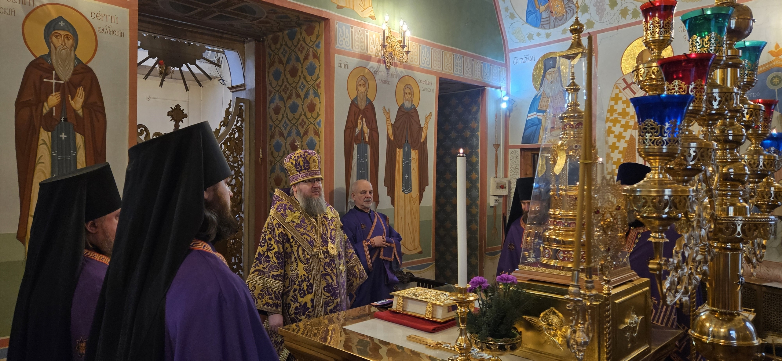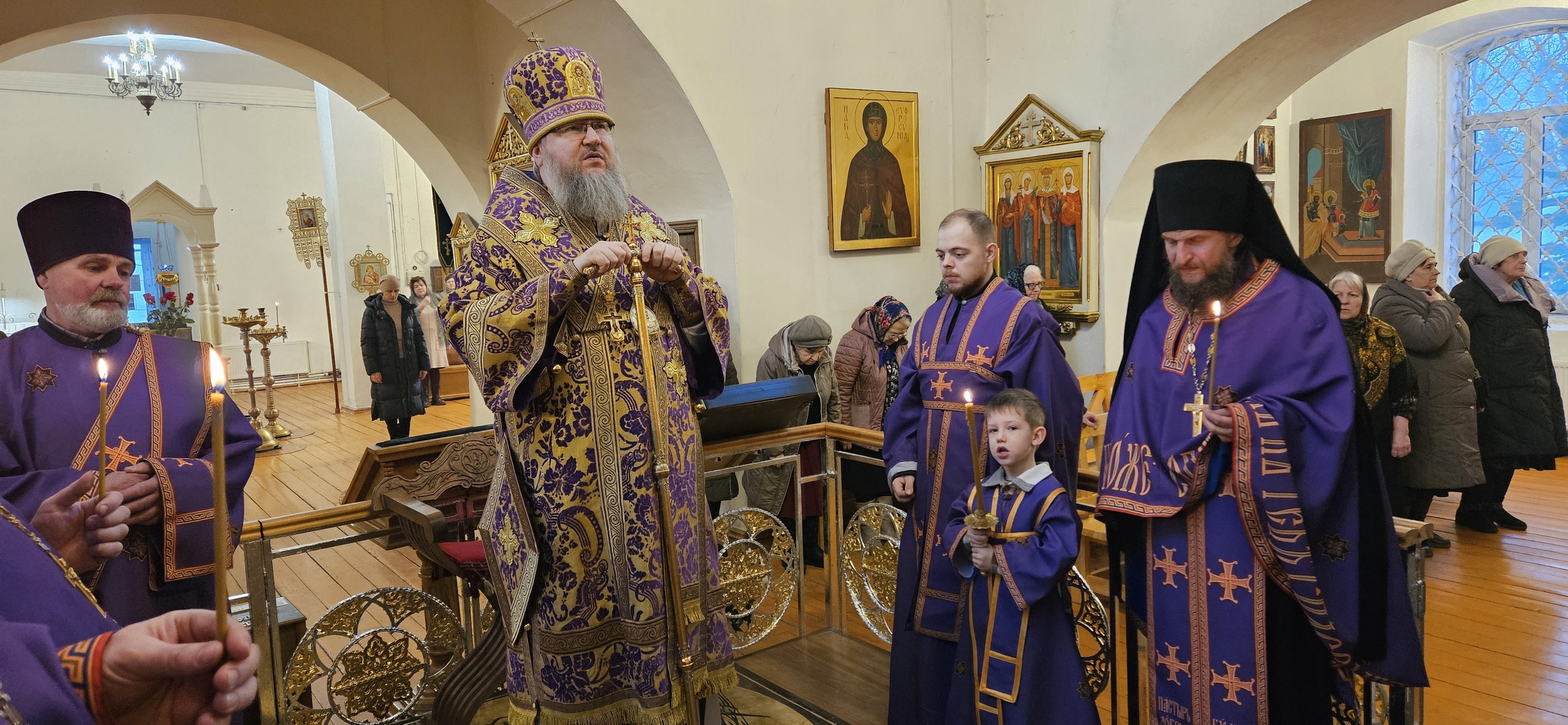 28 февраля 2026 г. Преосвященный Мелетий совершил Всенощное Бдение в в Преображенском соборе, Спасо — Преображенского мужского монастыря города Рославля.