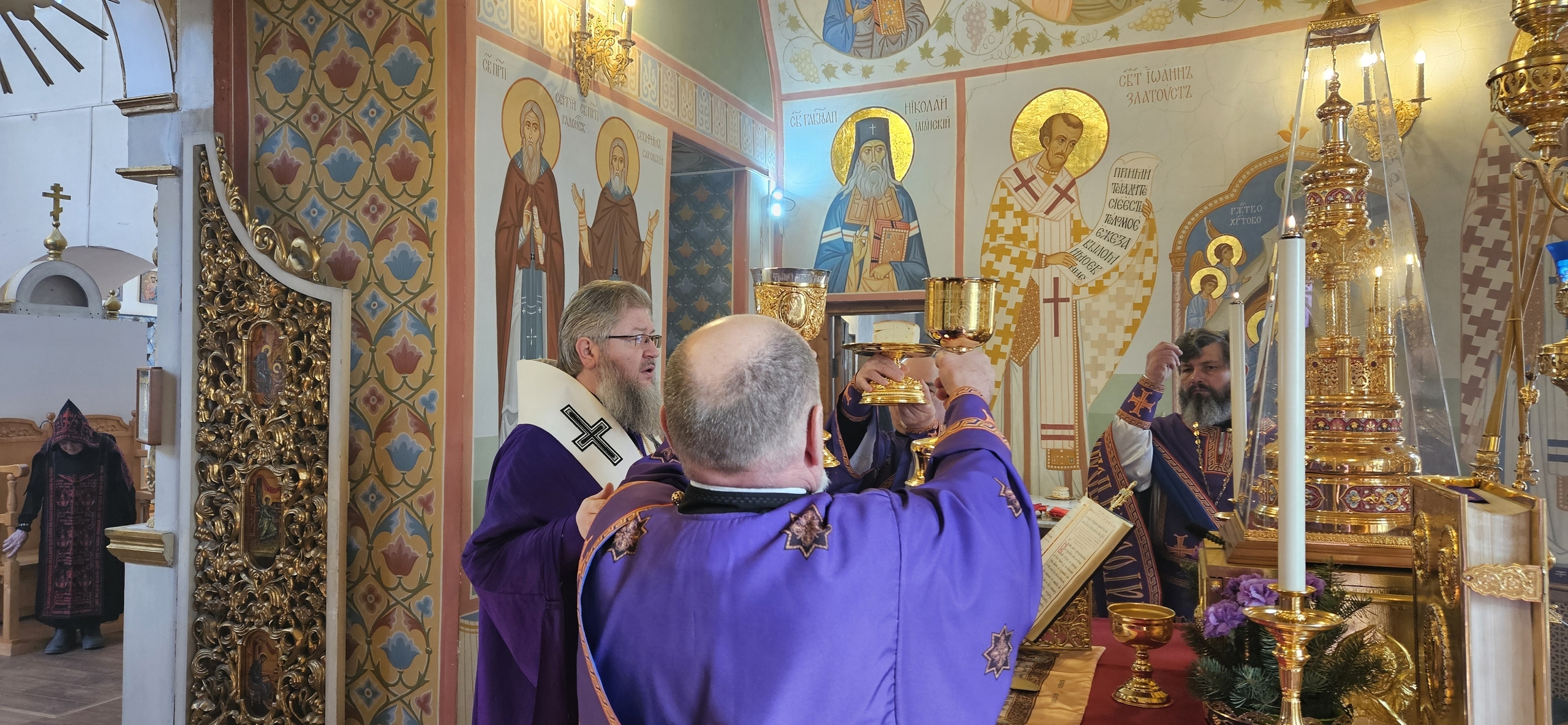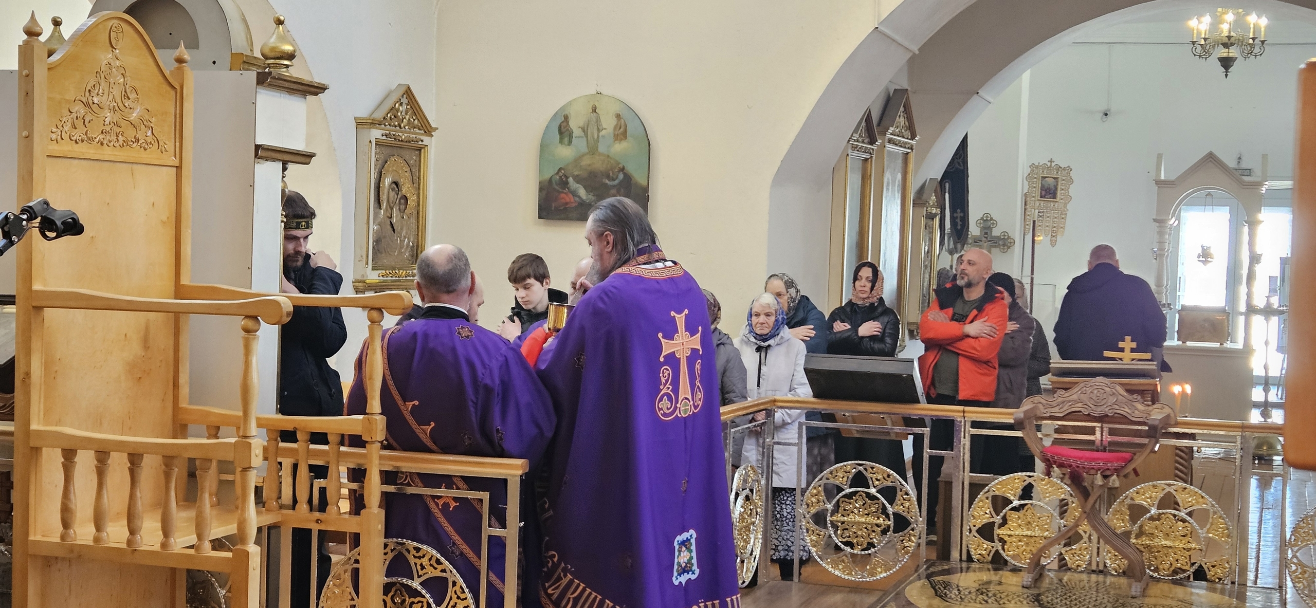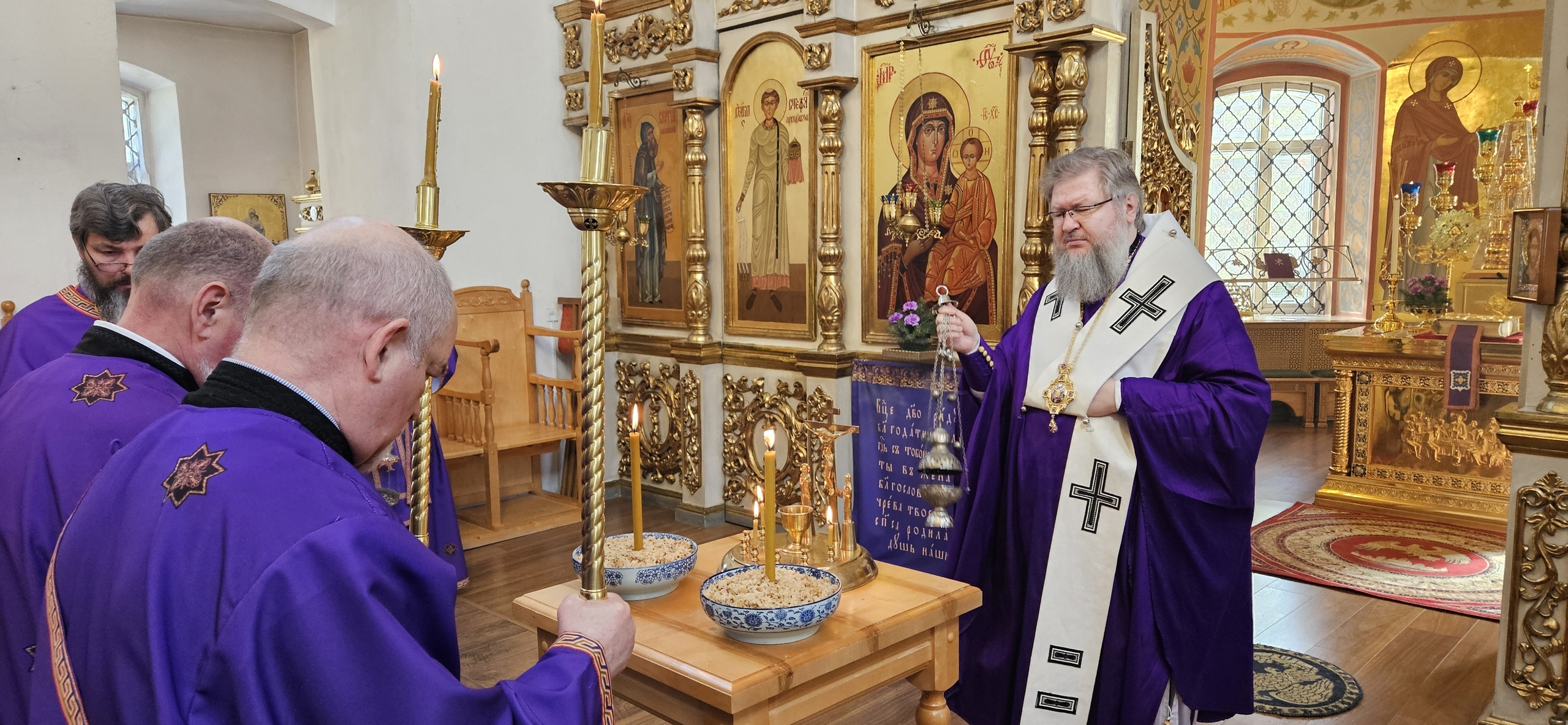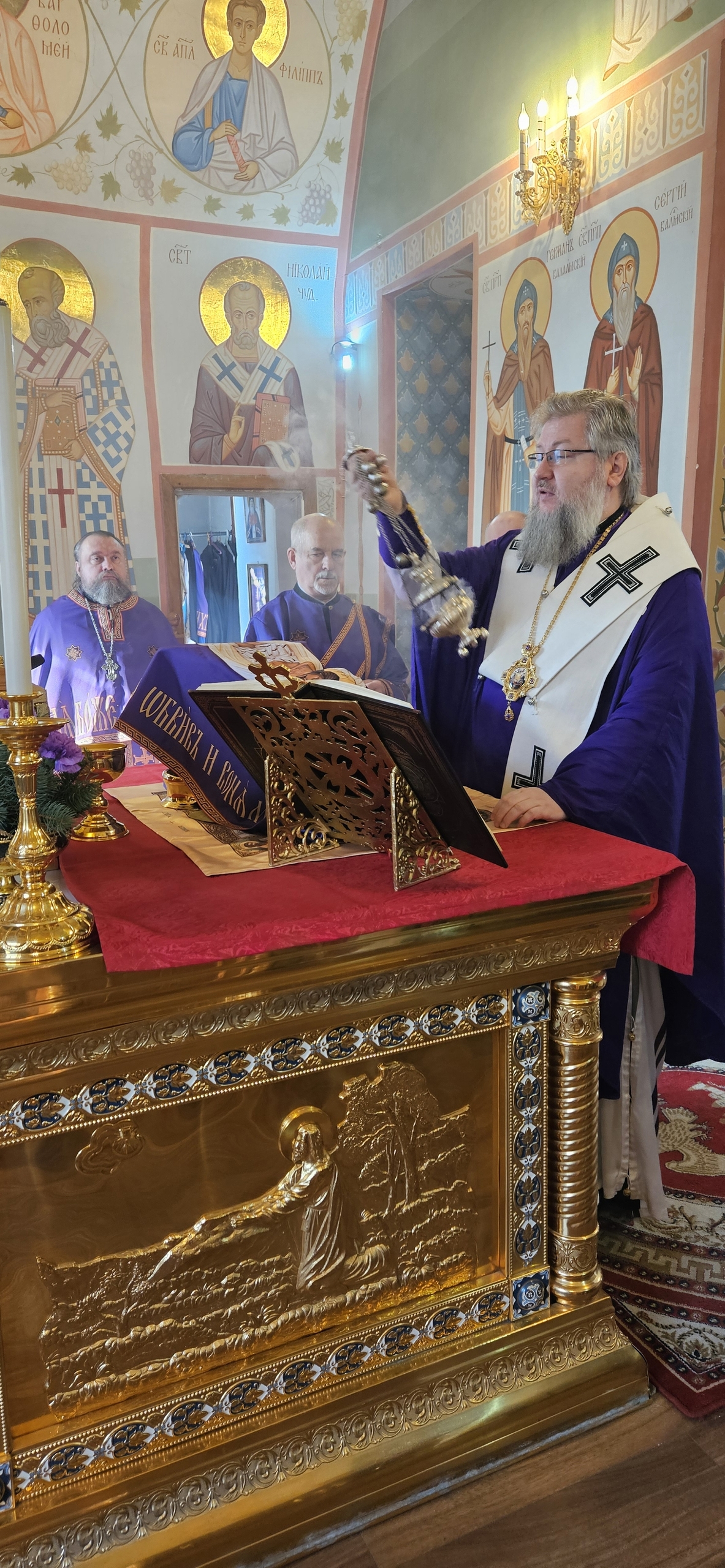 14 марта 2026 г. Преосвященный Мелетий совершил Божественную Литургию в Преображенском соборе Спасо-Преображенского мужского монастыря города Рославля.