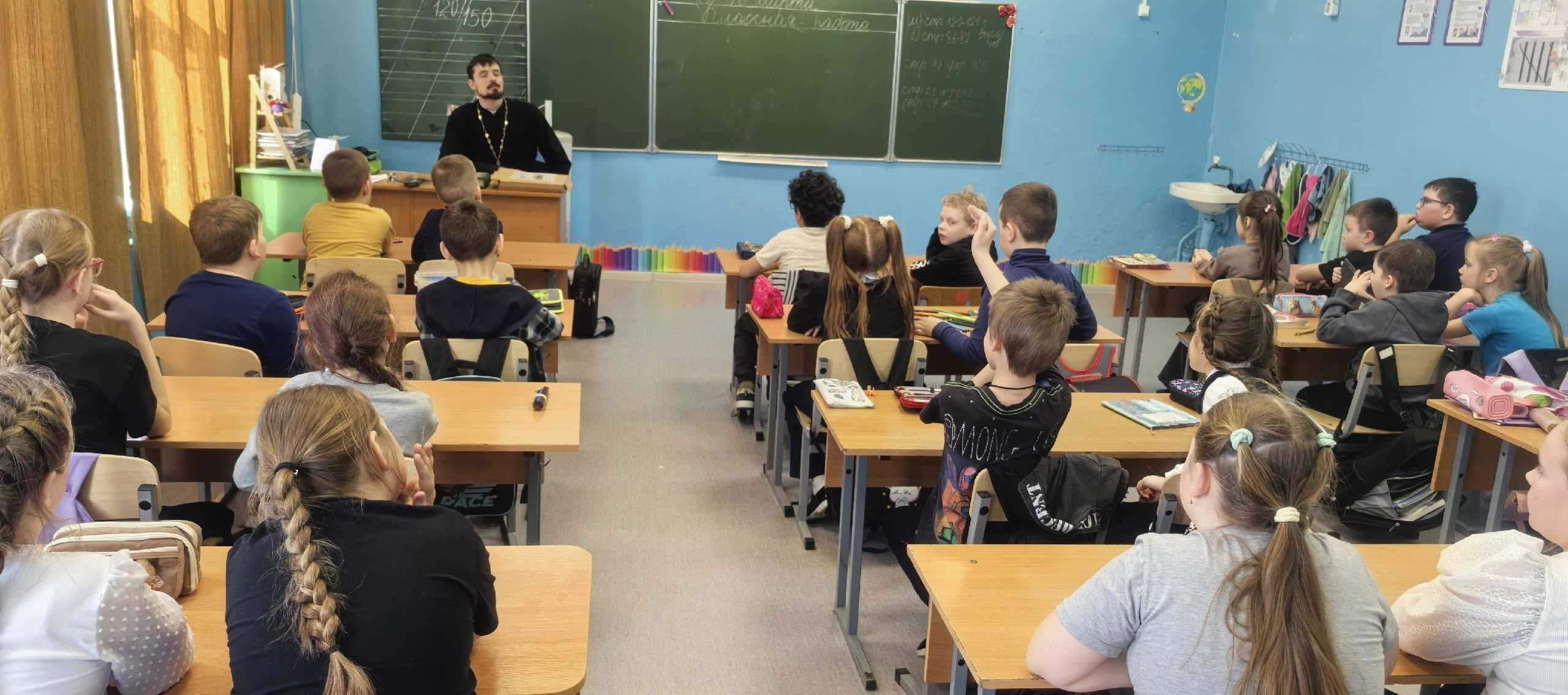 16 марта 2026 г. в рамках Дня православной книги в средней школе села Екимовичи состоялась встреча учащихся 2–3 классов с настоятелем Крестовоздвиженского храма села Екимовичи, иереем Валерием Власовым.