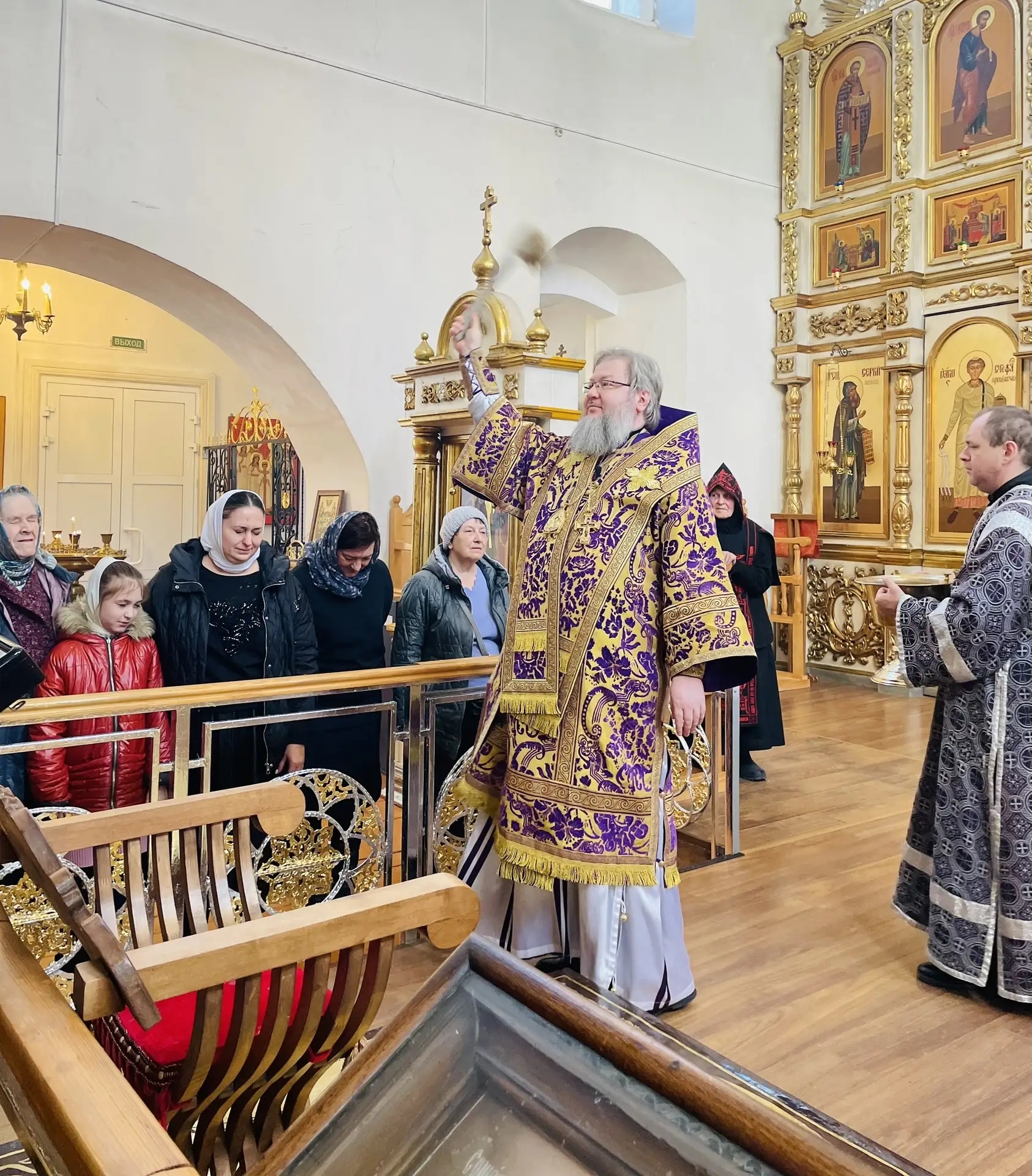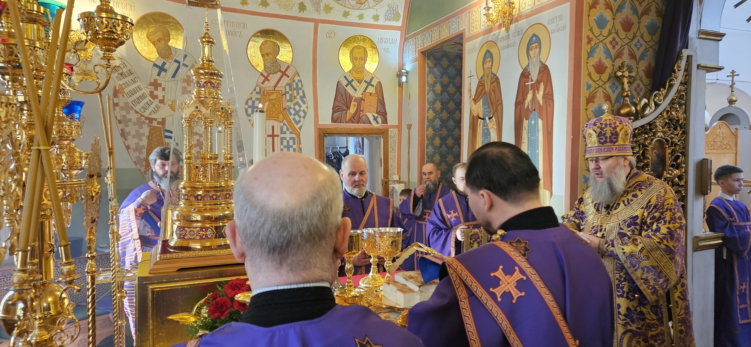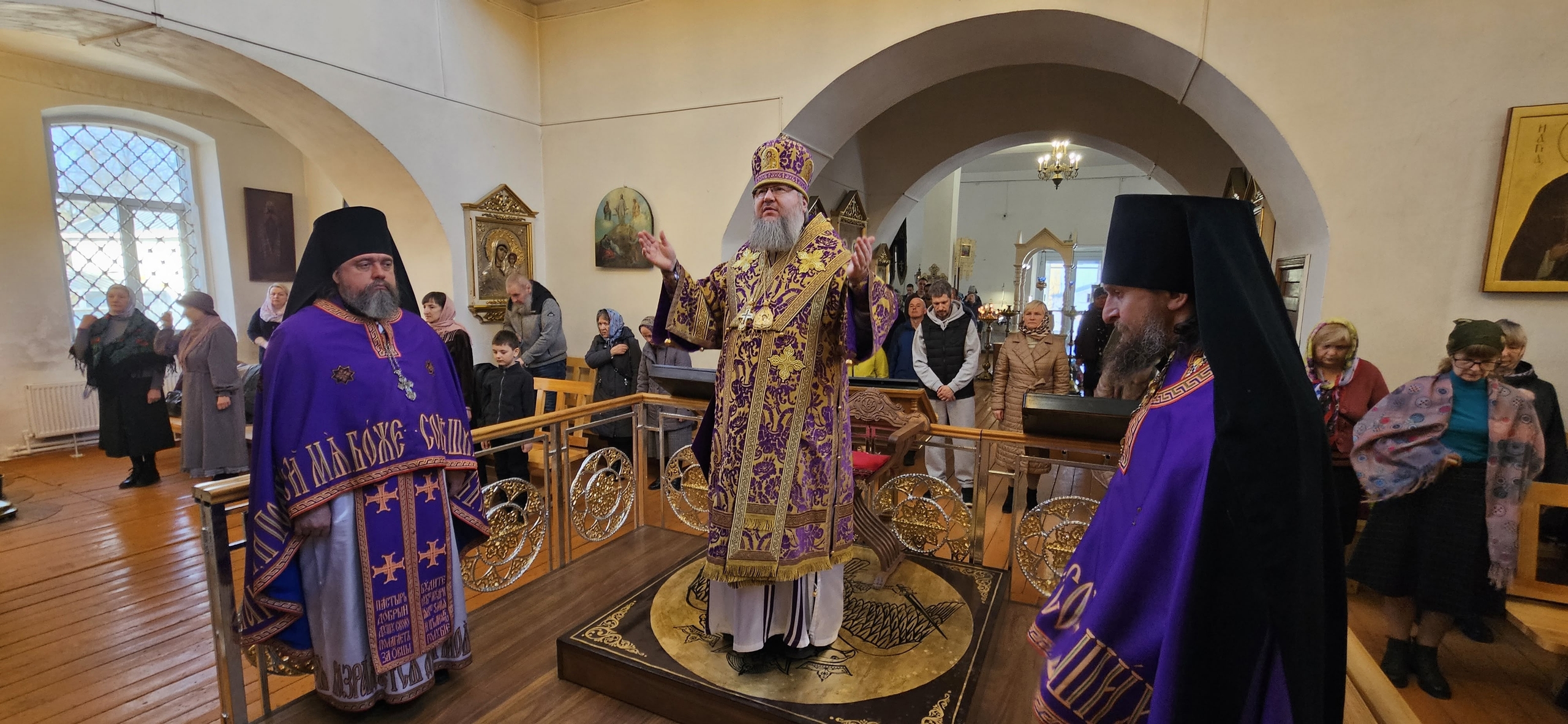 22 марта 2026 г., в день памяти 40 мучеников, в Севастийстем озере мучившихся, Преосвященный Мелетий совершил Божественную Литургию в Преображенском соборе, Спасо — Преображенского мужского монастыря города Рославля.