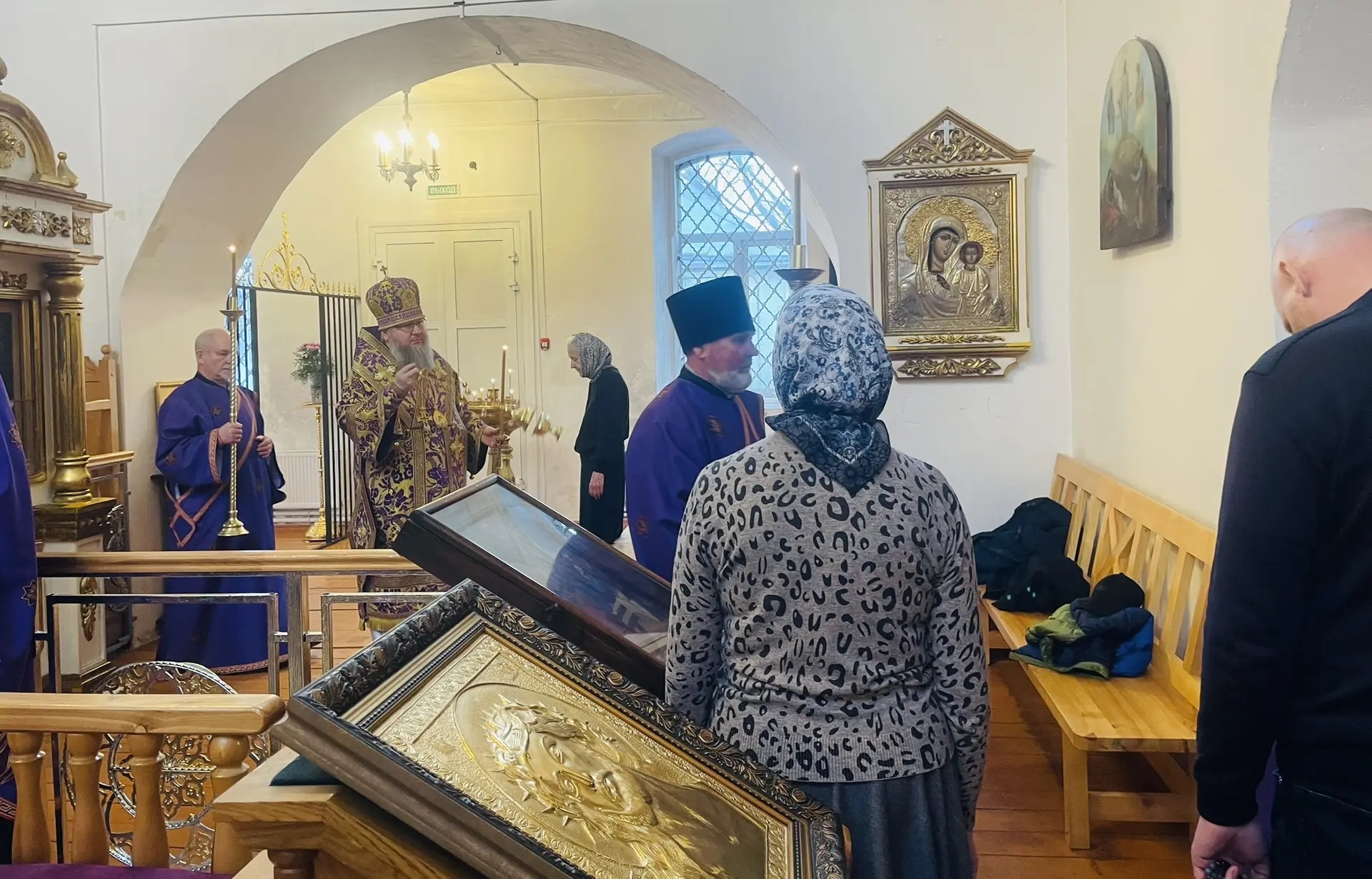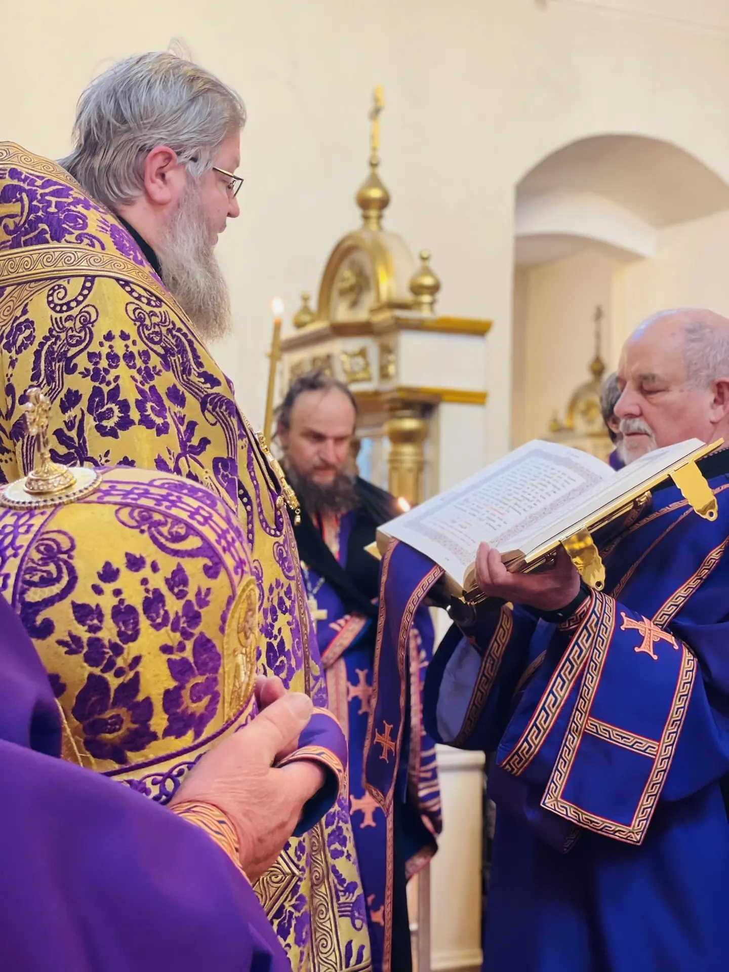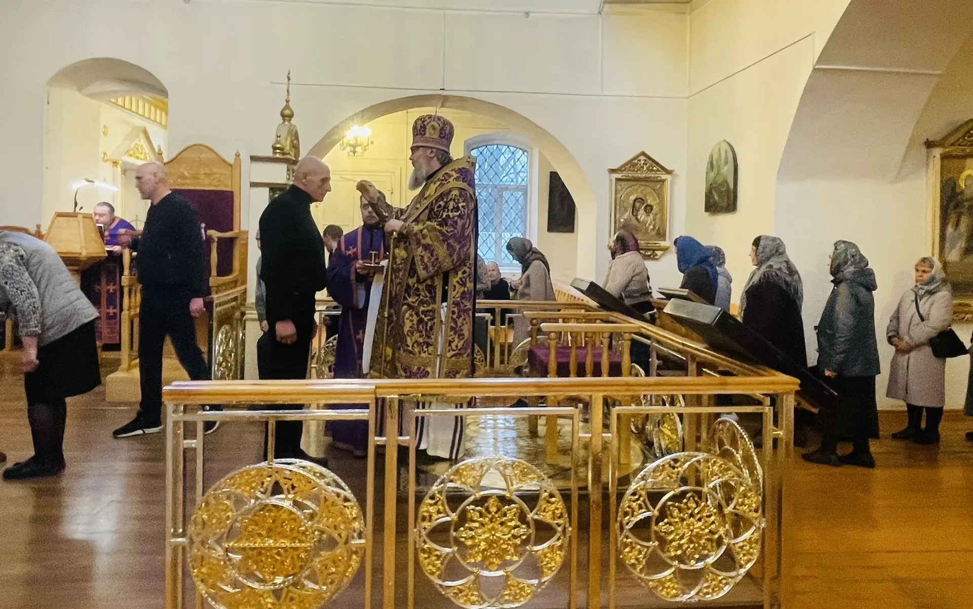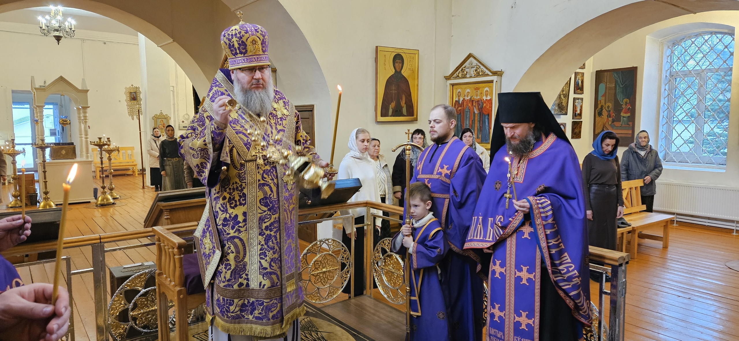 28 марта 2026 г. Преосвященный Мелетий совершил Всенощное Бдение в Преображенском соборе, Спасо — Преображенского мужского монастыря города Рославля.