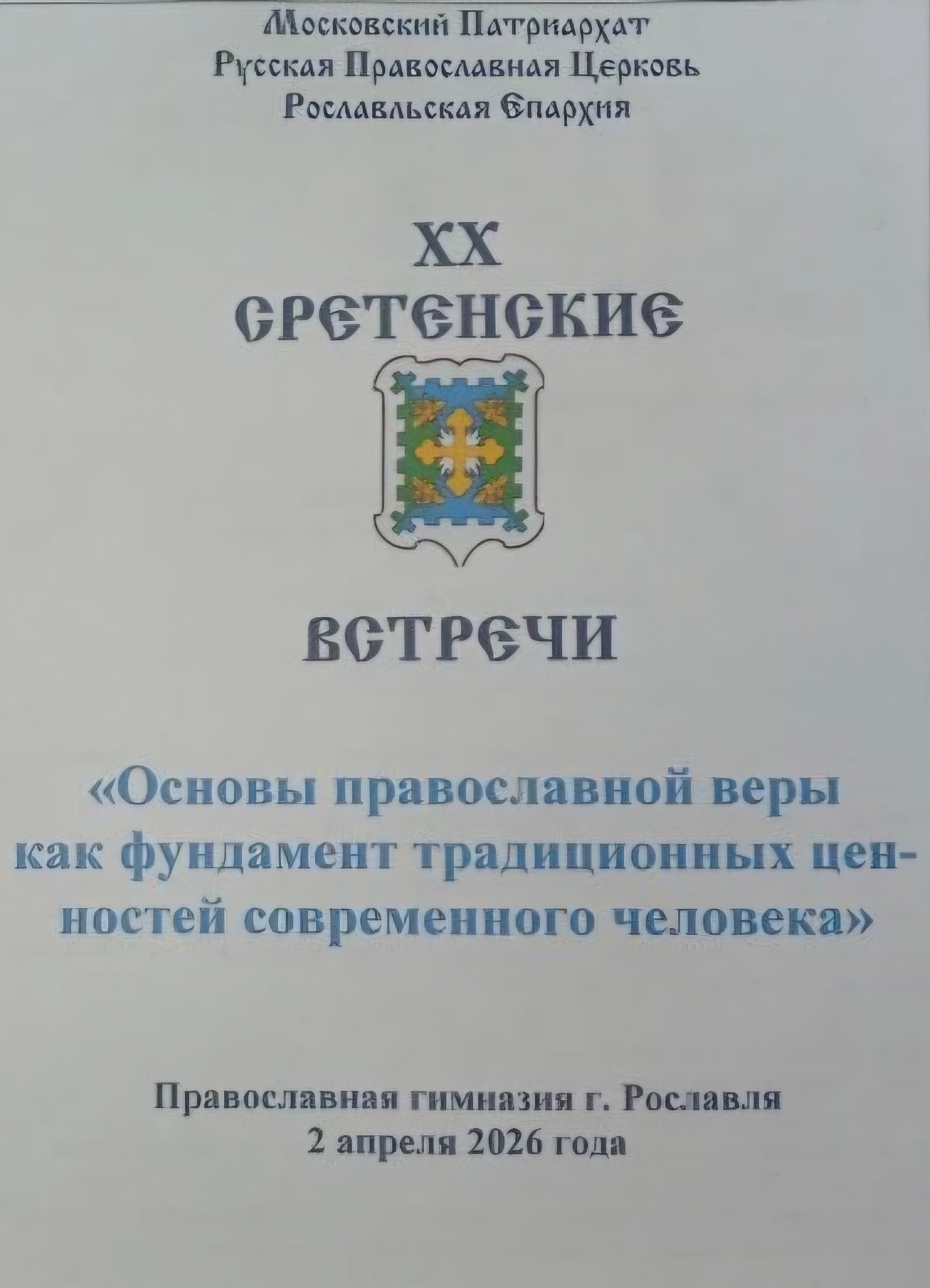 2 апреля 2026 г. в Православной гимназии Рославльской епархии прошли XX Сретенские встречи на тему: «Основы православной веры как фундамент традиционных ценностей современного человека».