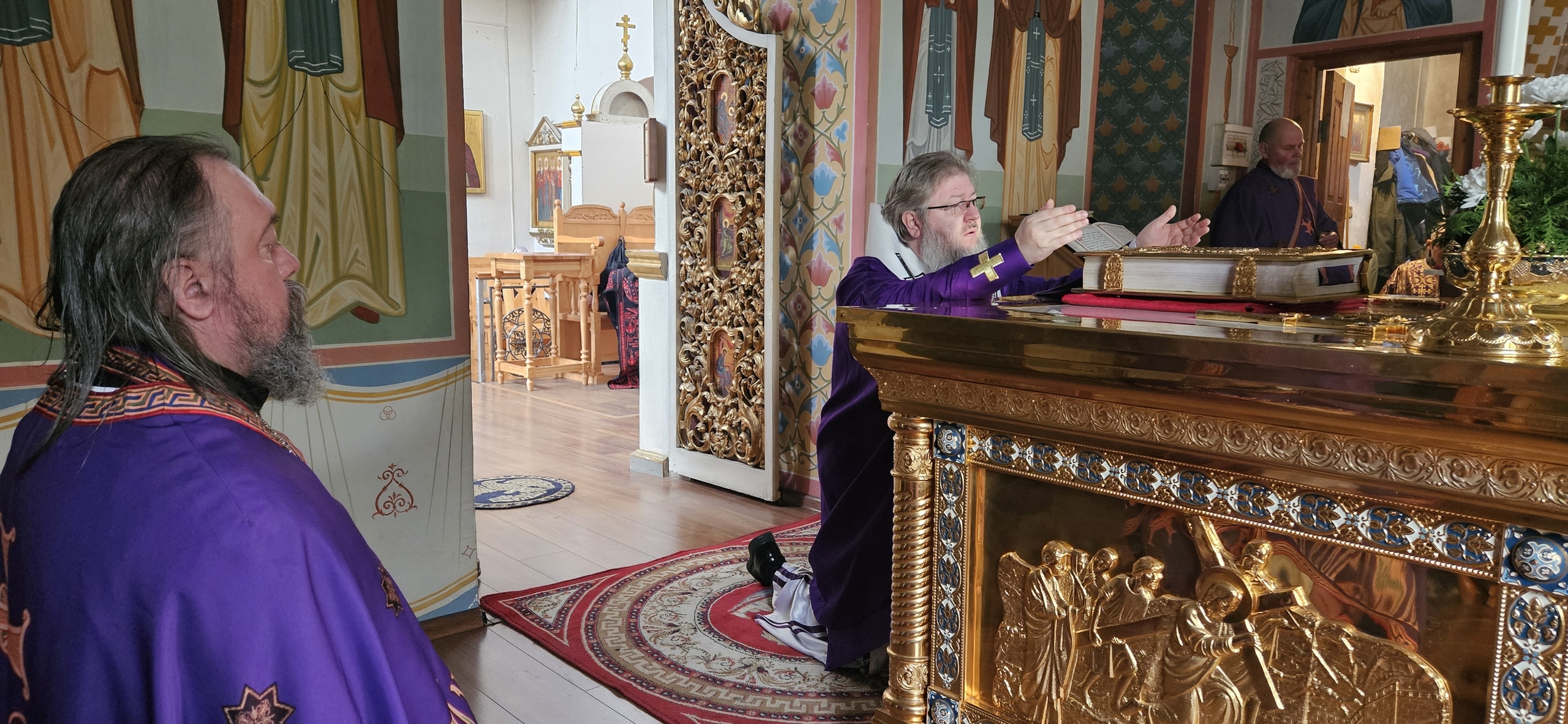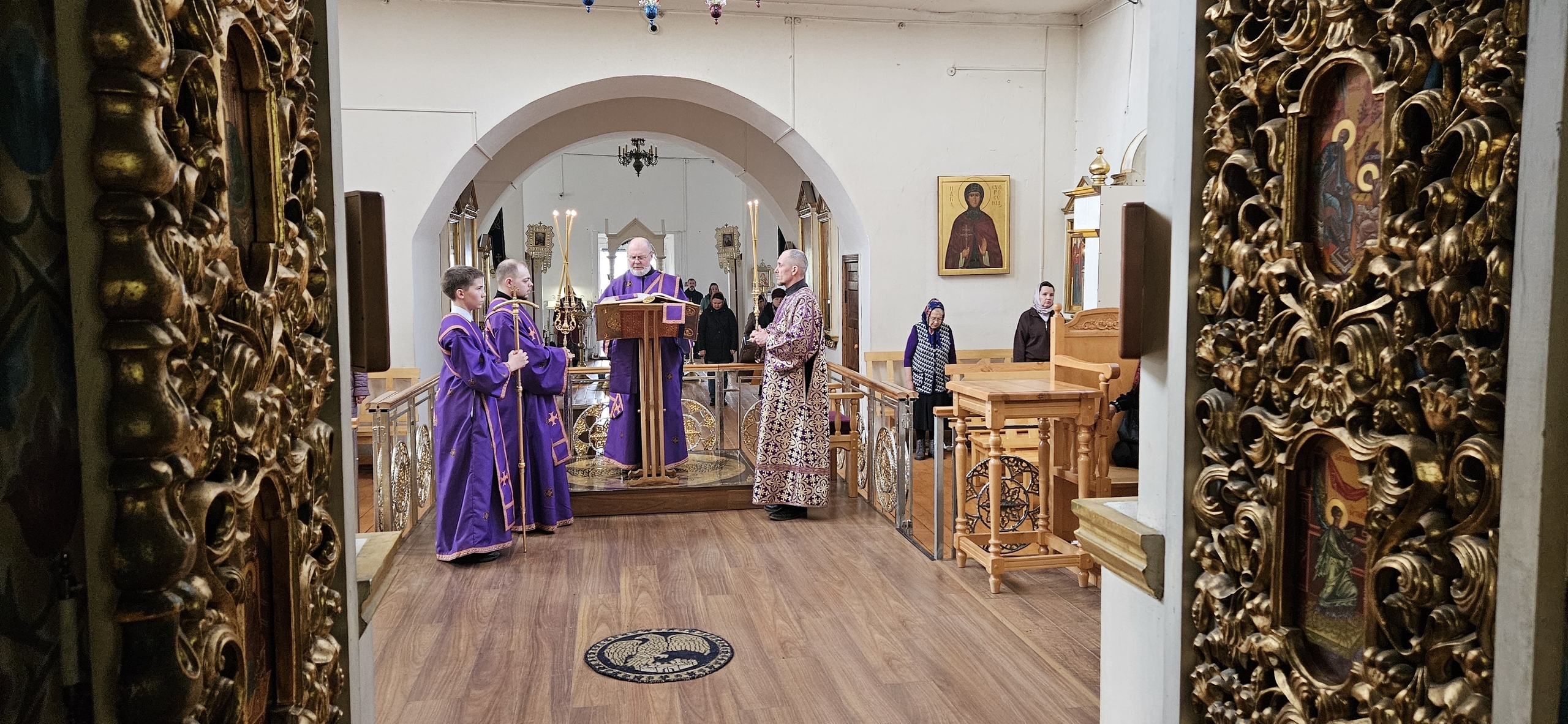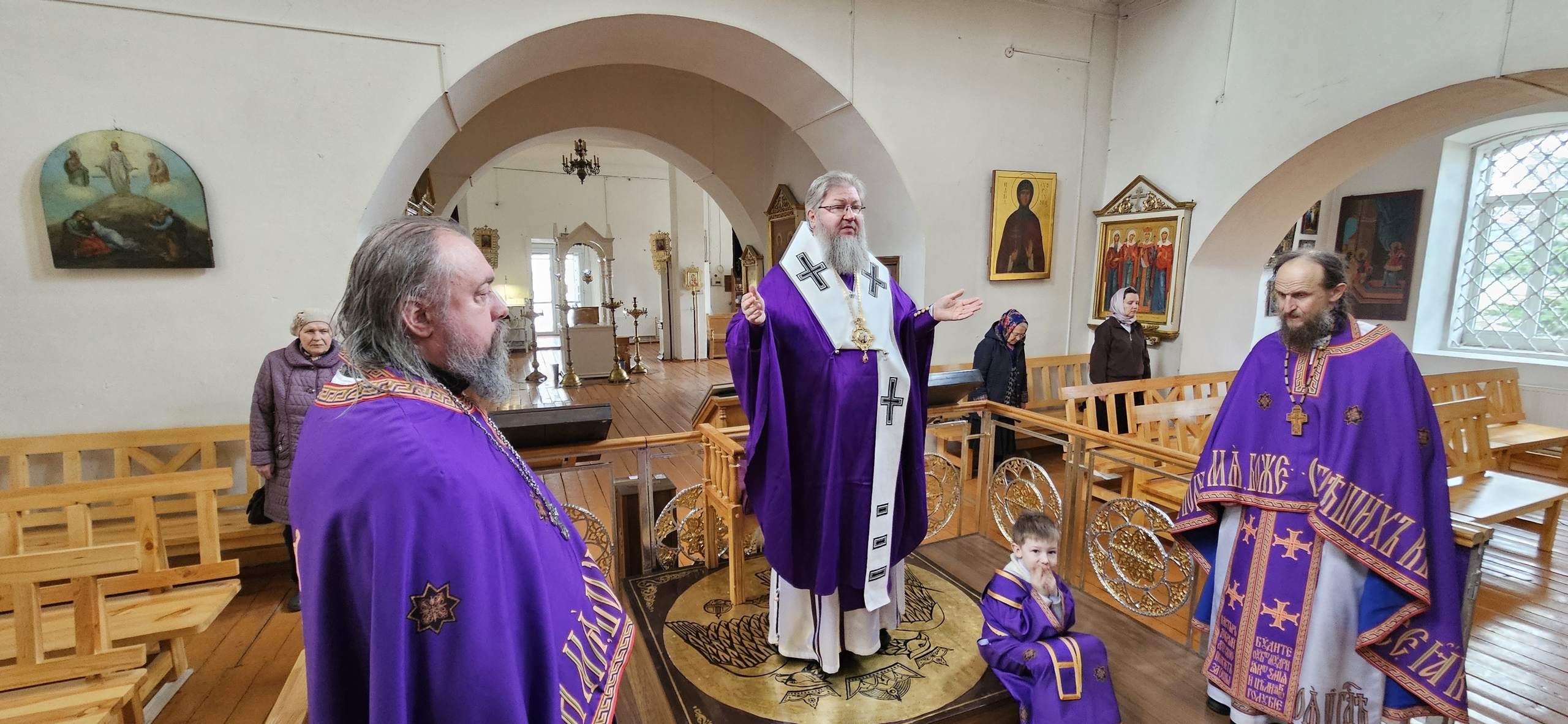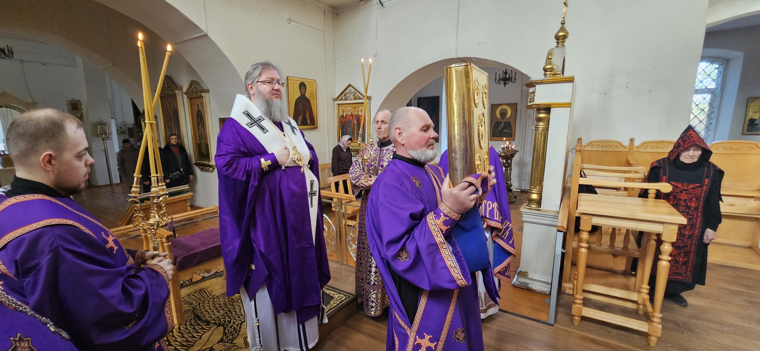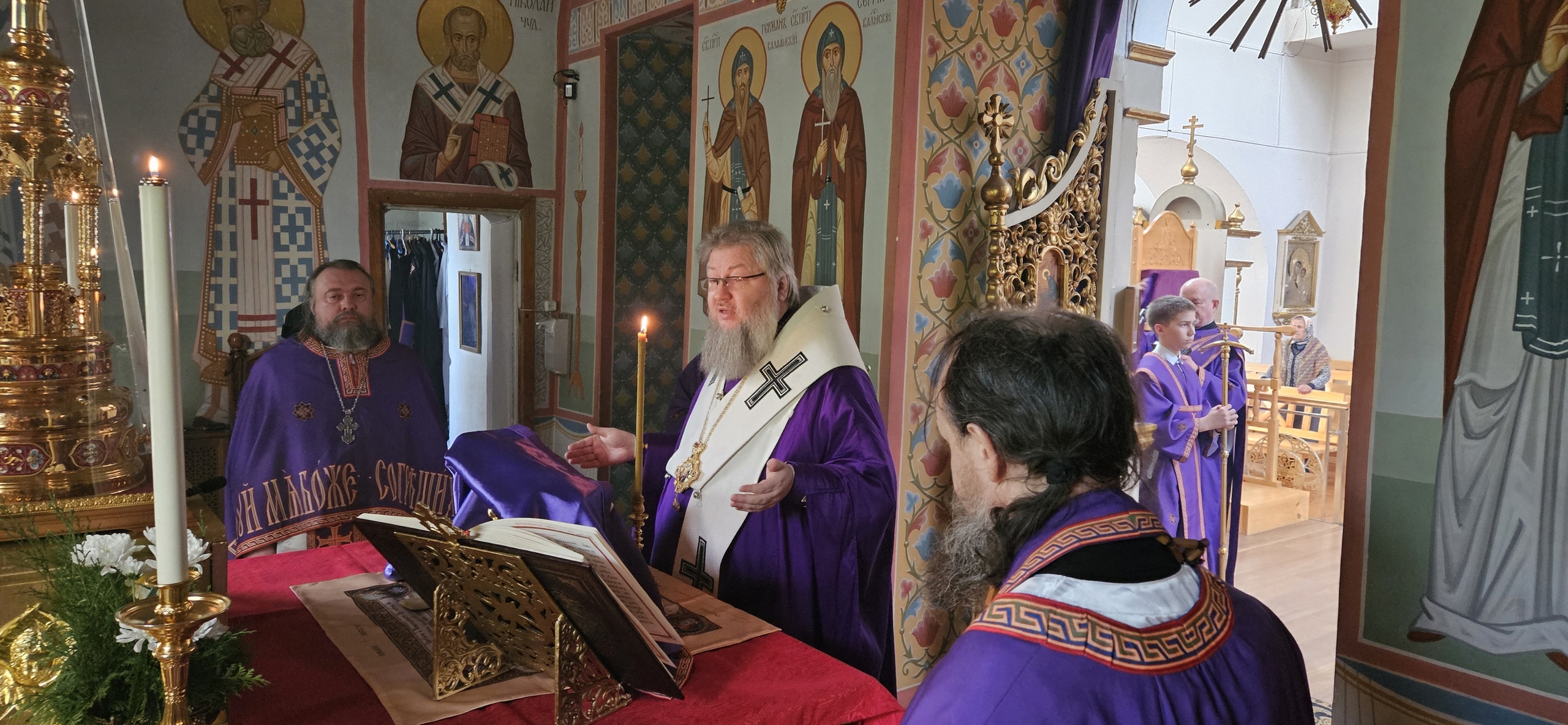 8 апреля 2026 г., в Среду Страстной седмицы, Преосвященный Мелетий совершил уставное Богослужение и Литургию Преждеосвященных Даров в Преображенском соборе Спасо — Преображенского мужского монастыря города Рославля.