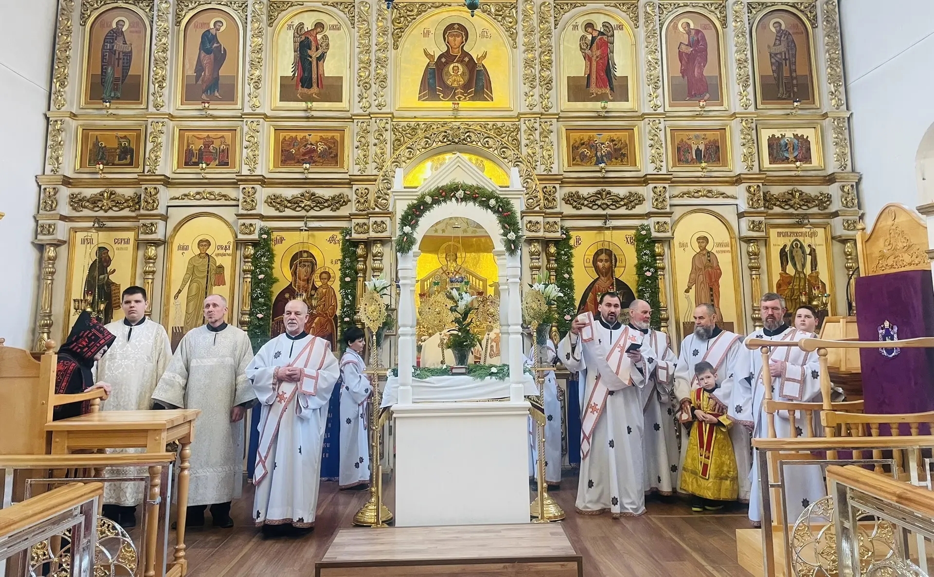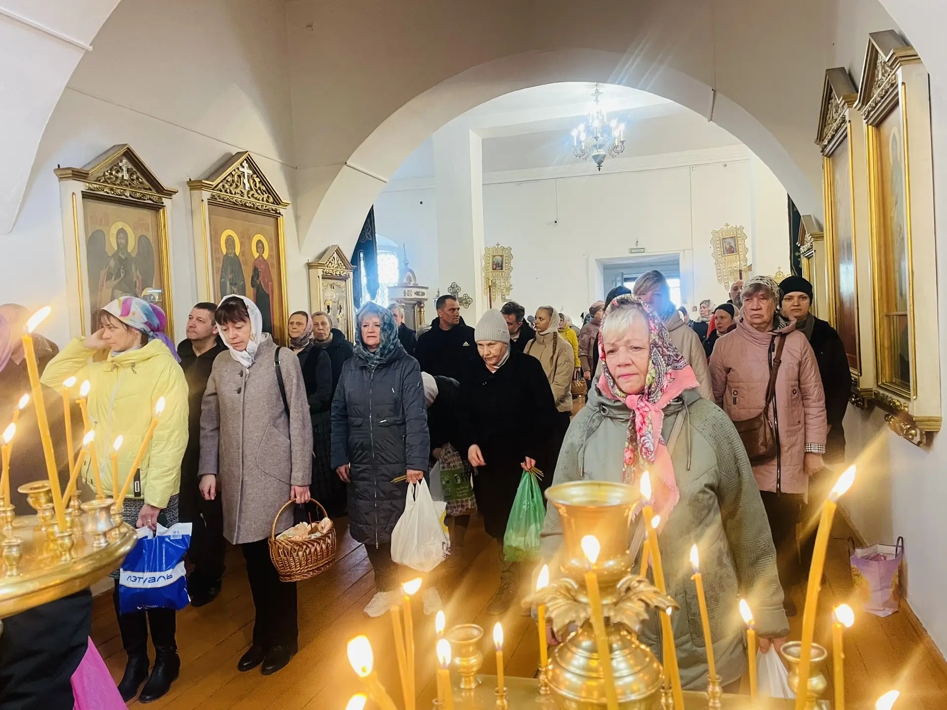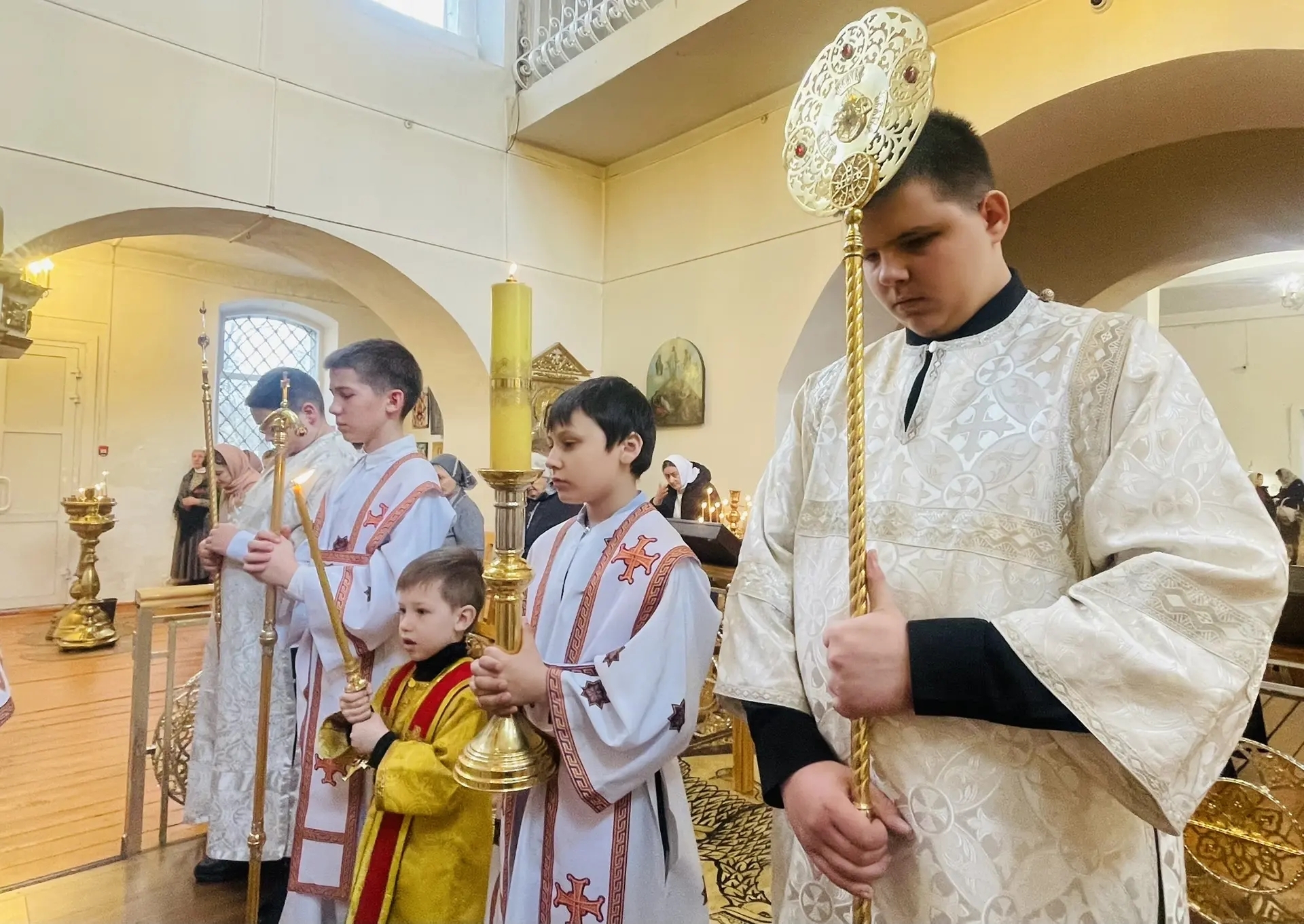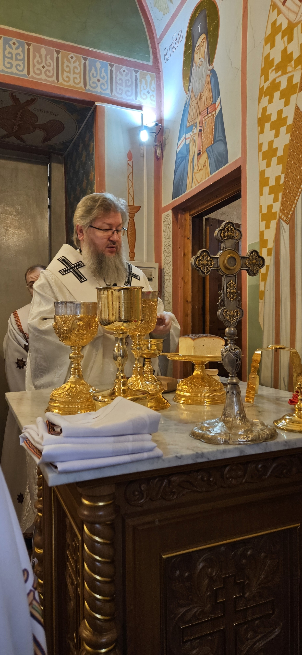 11 апреля 2026 г., в Великую Субботу, Преосвященный Мелетий совершил Вечерню с Литургией св. Василия Великого в Преображенском соборе Спасо — Преображенского мужского монастыря города Рославля.