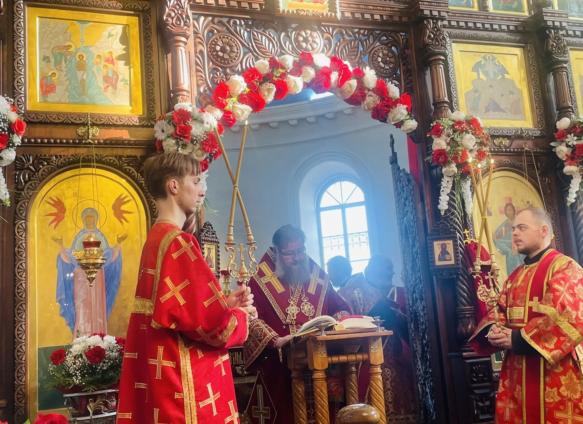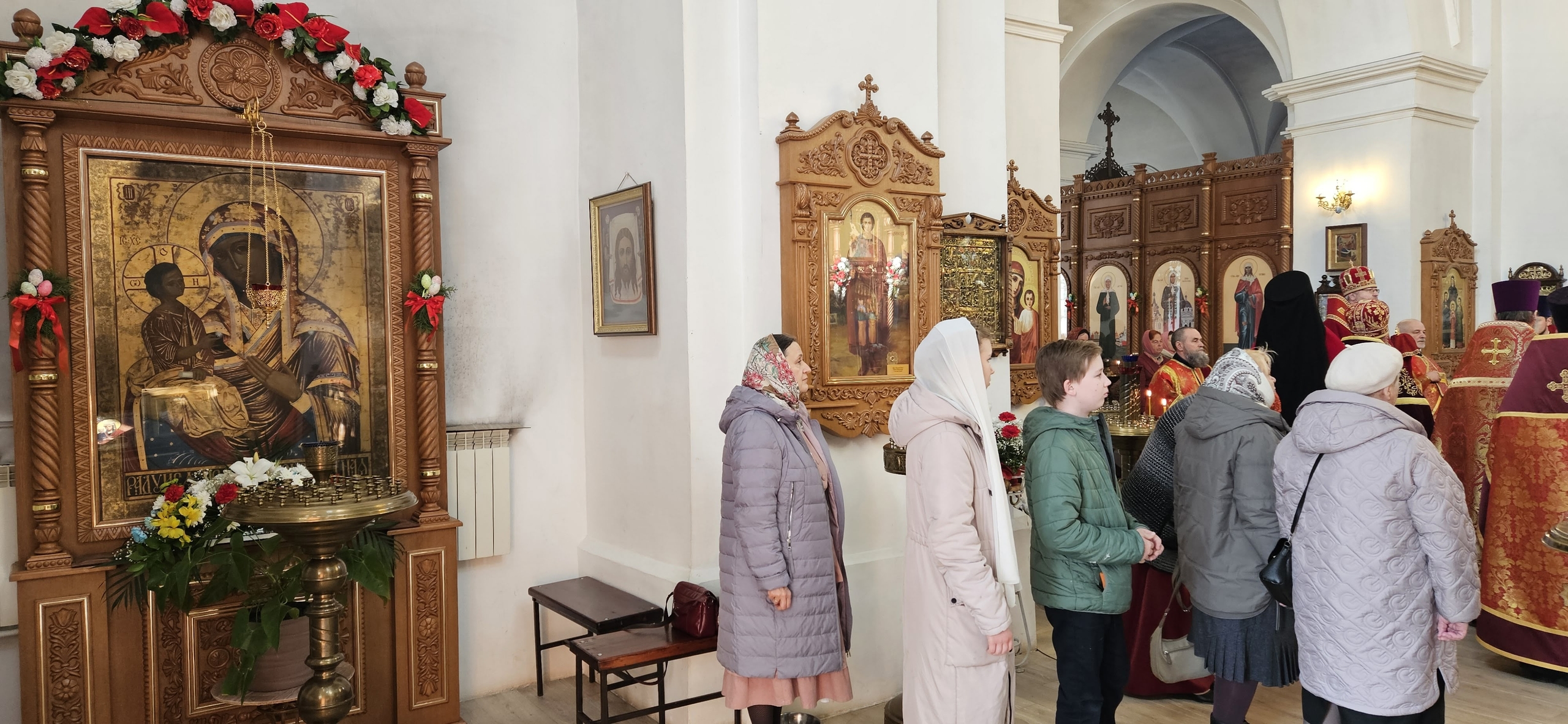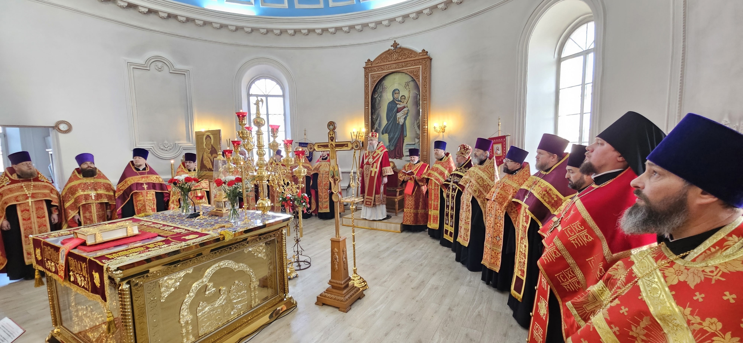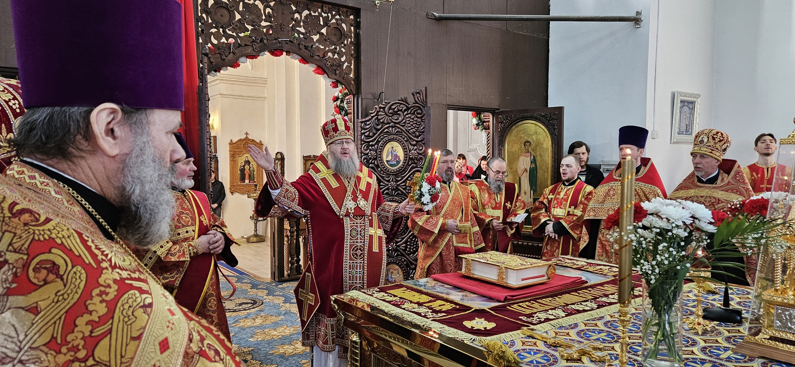 12 апреля 2026 г., в День Светлого Христова Воскресения, Преосвященный Мелетий в сослужении духовенства епархии совершил Великую Вечерню в храме Рождества Пресвятой Богородицы города Рославля.